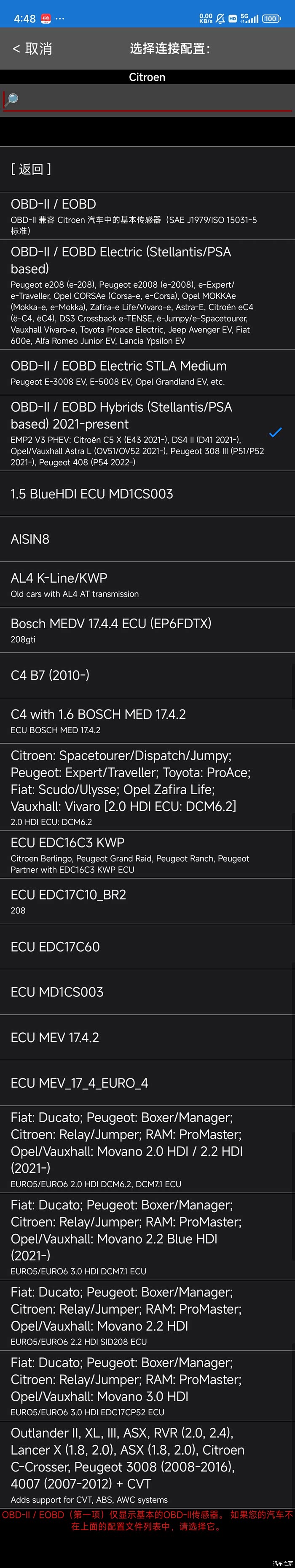 请问大佬CarScanner,雪铁龙C5 2.0选择哪一个OBD型号?