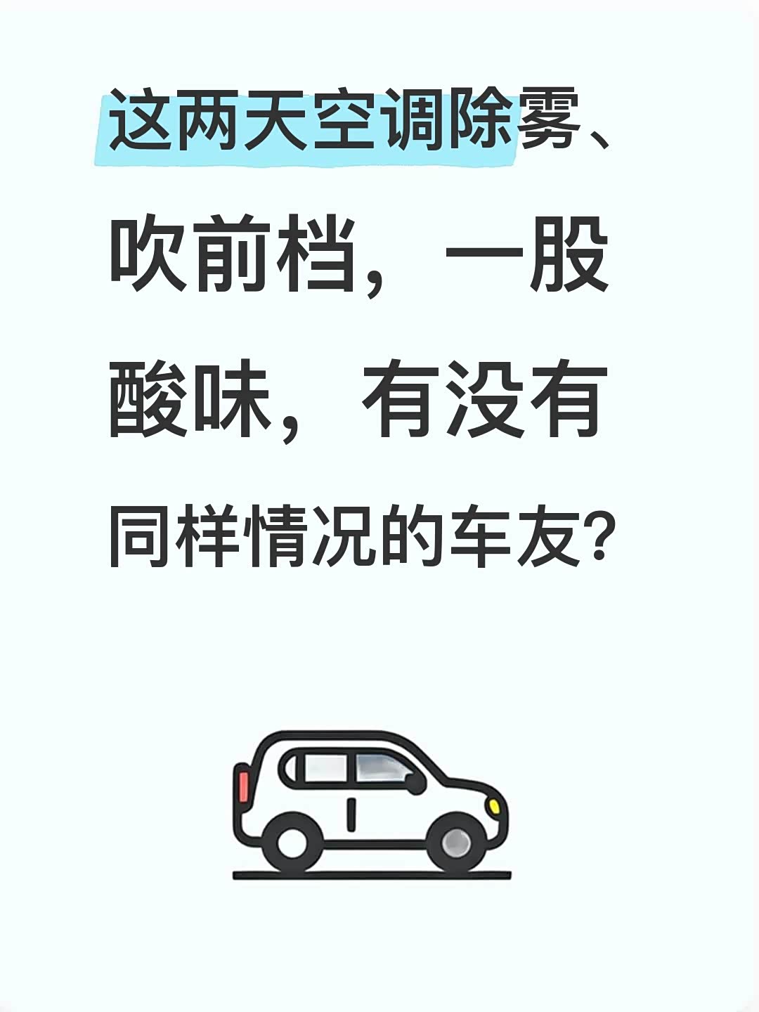 这两天空调除雾、吹前档,一股酸味,有没有同样情况的车友?
