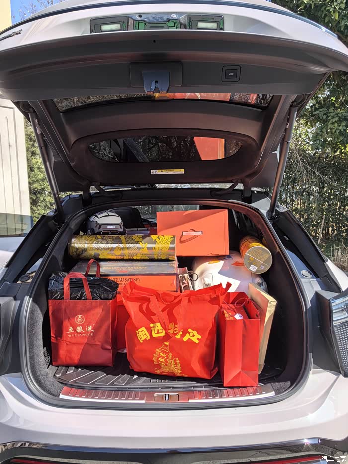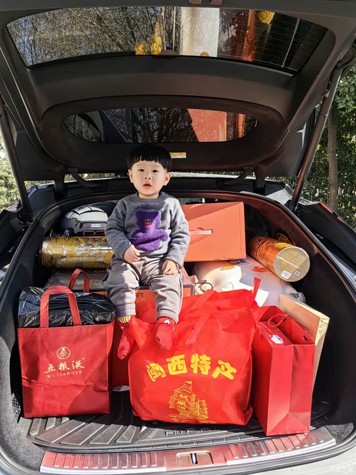一回家,抓紧把事先准备好的行李和年货装车,老婆还担心装不下,但变身四座版的高合HiphiX的装载能力可不是一般的强,我甚至还装了一个小宝宝。