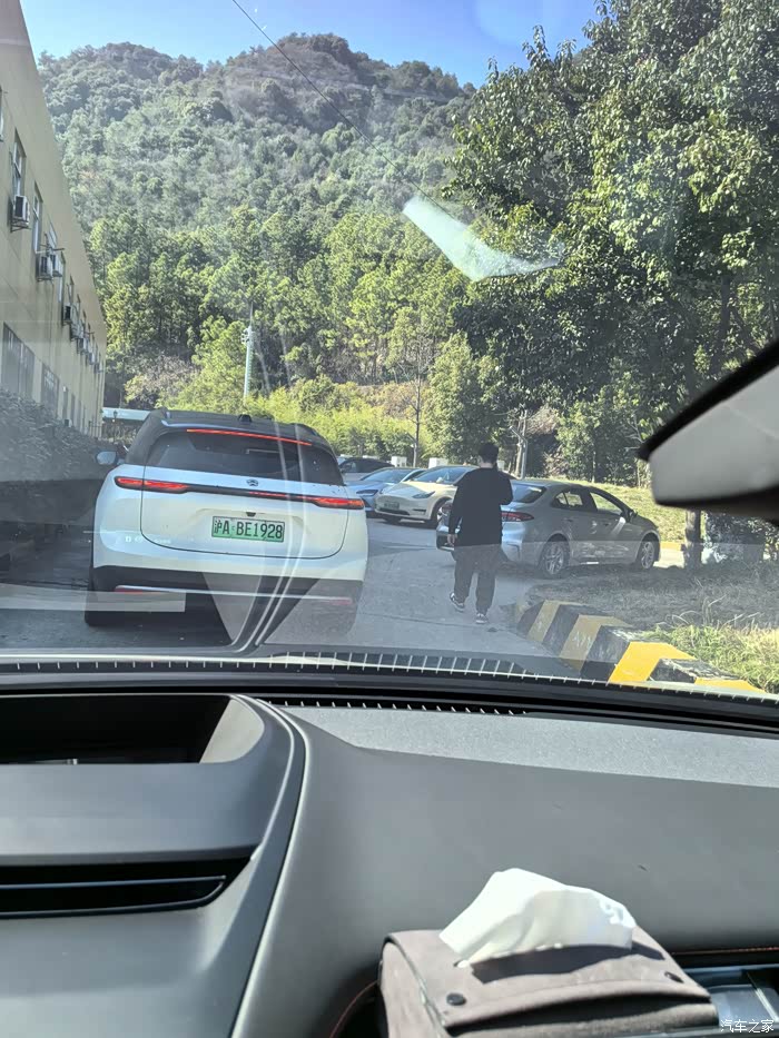 果然,服务区的充电区拍了长龙,不过,好在现在服务区的充电桩布局真的是多了,数了一下,一共有十个位置,前面三辆排队,等等吧,应该快的。