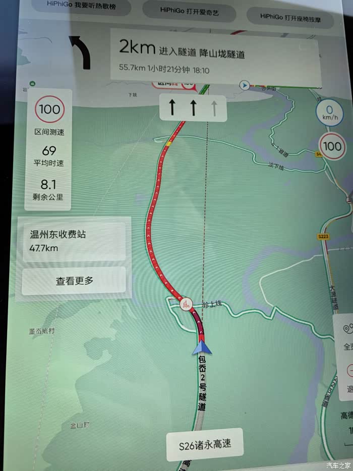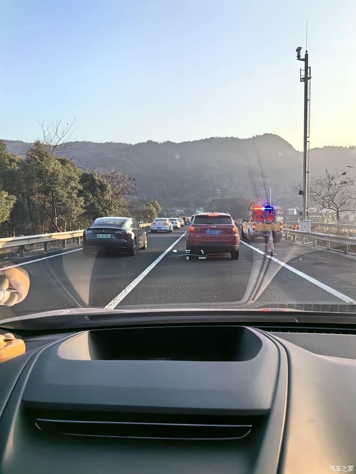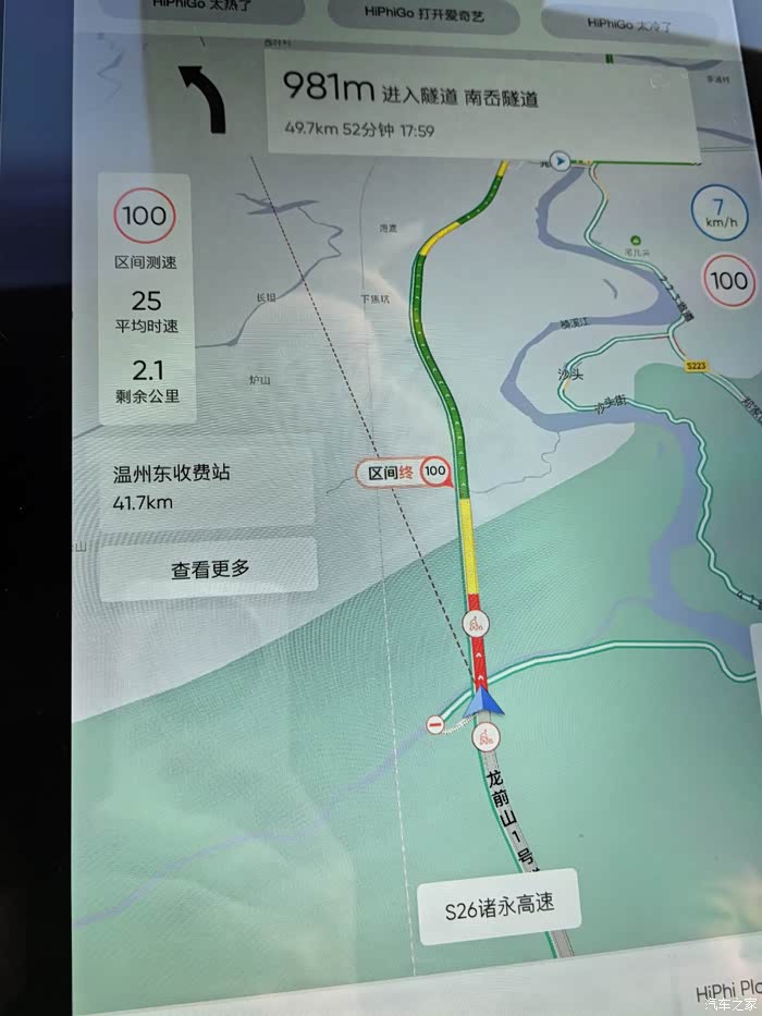 结果到了永嘉之后开始堵车了,现在导航比较智能,都会通知堵车原因和预计时间,让人心里有底。堵了10公里,不过好在一直在动,大概开了20多分钟,终于开出了红色区域。