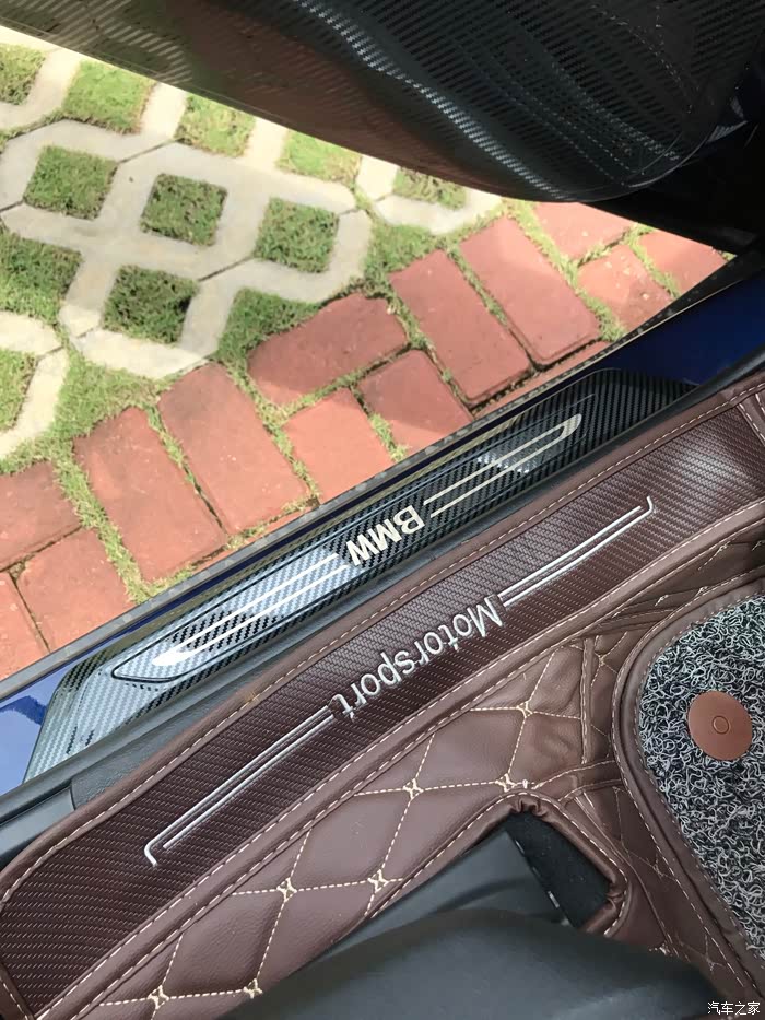 2、内饰:没有鸡腿的宝马是没有灵魂的宝马,这个实在是可惜,内饰实在太家族化了(简陋)了,自己加了木纹的帖子,稍微好看点,但是和同级别别家的对比,真的没法对比。