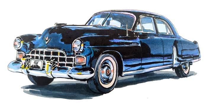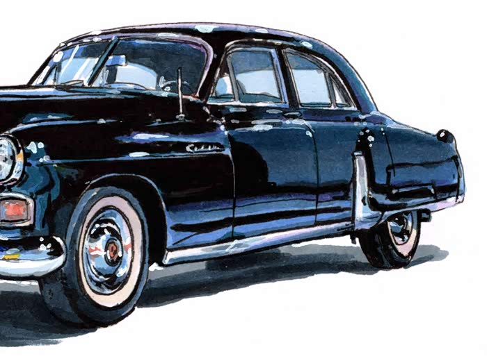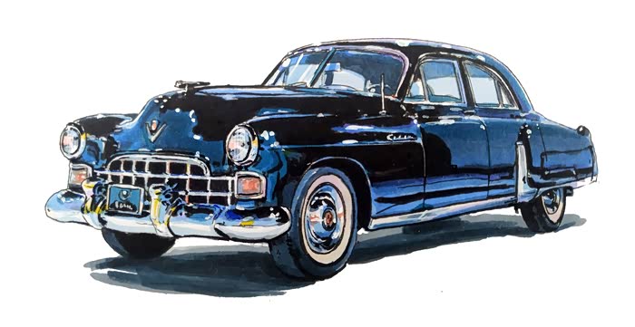 忙里偷闲,带爱人看了一部好评如潮的电影“银河护卫队3”,剧情围绕拯救受伤同伴”火箭“,展开的激烈又澎湃的剧情,诠释了友情家人和团队精神,最终集体战胜坏人得到拯救。小浣熊的名字——“火箭”,让我想起今天手绘的这款老爷车~1948 Fleetwood 60 Special,它因“尾鳍”设计成为经典,也有一个响当当的名字·“火箭尾”。