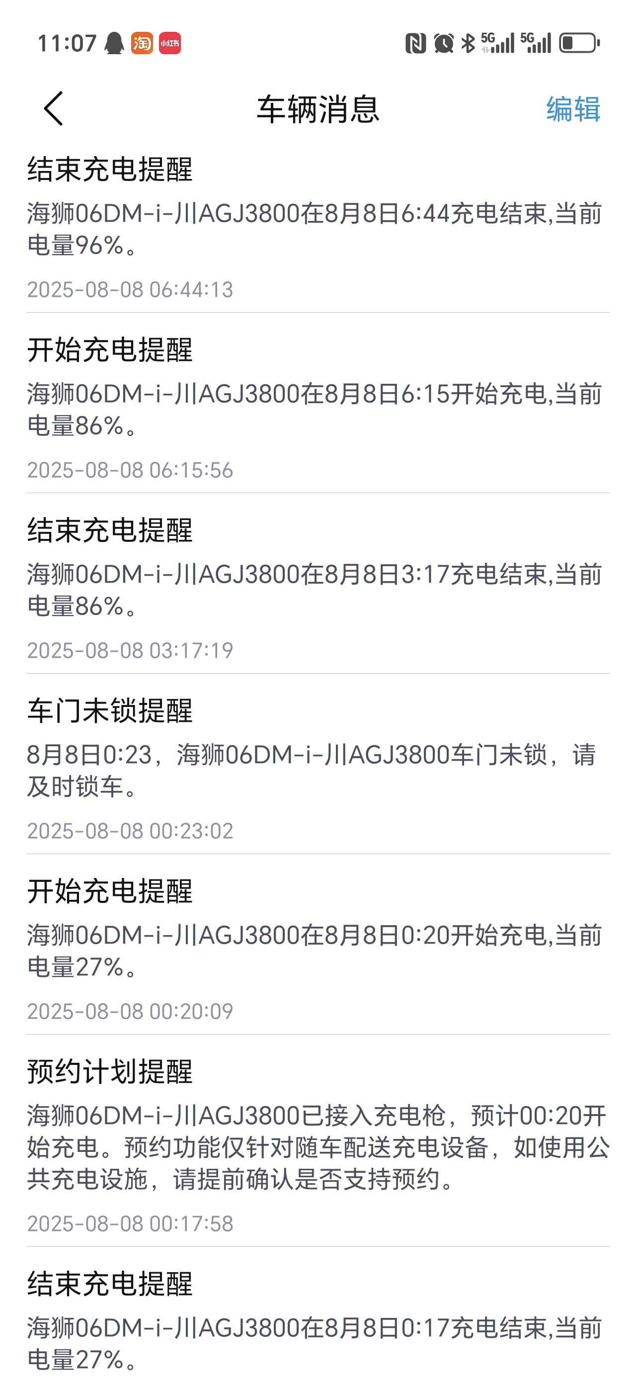 5、偶尔充电可能会遇到没充满就停止,如果只是偶尔一次两次是正常情况,我目前已经遇到一次,半夜预约充电至86%就显示充满了,第二天去4S专门检测了电池故障和电池情况,当面读码全部正常且无故障日志才放心走的,解释为环境电压变化、电池充电保护都会引起这种情况。