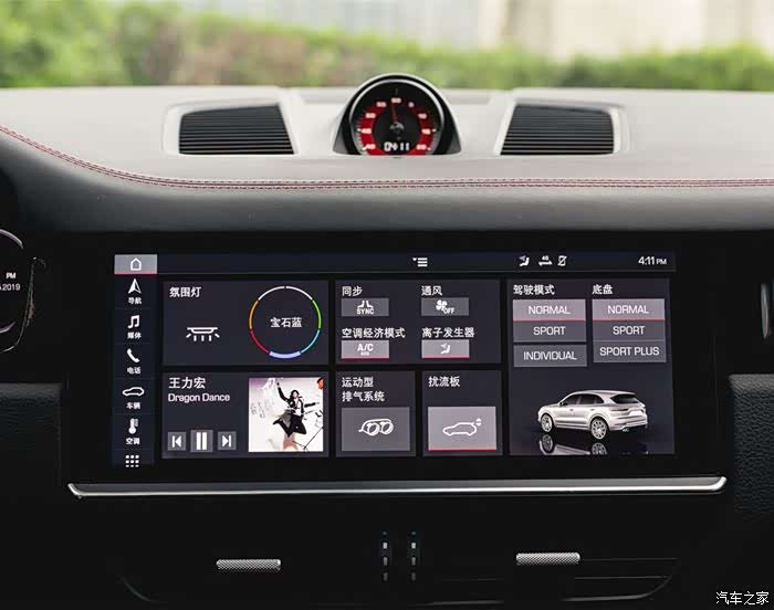 2、舒适性: 新卡宴新的屏幕大很多,多了一些触屏面板设计的新元素!舒适进入,空气悬挂。Macan 就是走运动路线的,路感包括刹车的制动线性都和卡宴不一样。