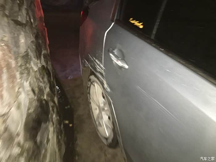 2019年2月1日晚上事故发生了!因路面太窄,雨水天气视线与道路不熟悉的情况下,我驾驶着小五与墙体发生了单方事故的刮擦