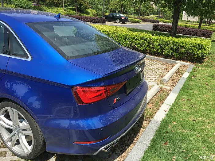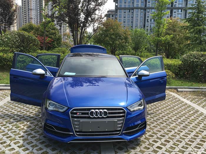 提车整一周了,大致说下用车感受。动力强劲,可以用无敌来形容,油门灵敏转向精准,平时不温不火,一旦用一点激情的火花去点燃,爆发得让人晕眩。晴天里的一抹雪邦蓝,马路上回头率相当高,尽管你看起来只是辆太不起眼的小车,但这抹蓝色已经暴露了你的身份,回头望去,也许看见的只剩下绝尘而去的四出排气。晚上奥迪牌灯厂又会让你展现出另一面的耀眼,虽然没改LED大灯,但远远望去已经让人瞩目。内饰虽然没有奔驰的奢华,但软包和翻毛皮搭配的恰当好处,坐着非常舒服。可能本来开的也是大众系的车,功能键简洁明了,能非常快的适应。如果是家庭的第一辆车,这个价位我应该不会选择S3,毕竟第一辆车会更多的去考虑日常实用性,但现在开的已经是SUV了,而且S3在满足基本实用性后还能偶尔肆意放纵激情,那这辆小钢炮真是不二之选了,当然也费了不少口舌,最后连忽悠带骗让老婆批准了花2倍的价钱去买一辆‘小车’