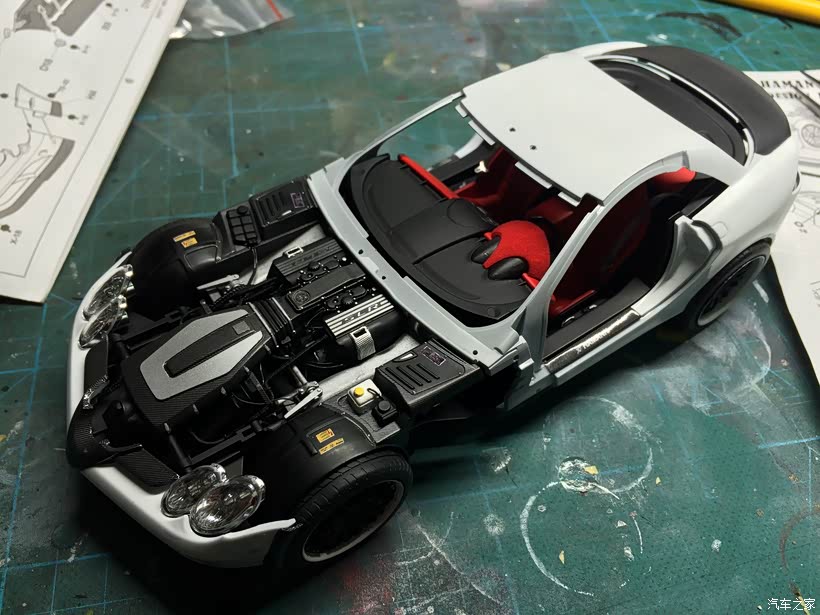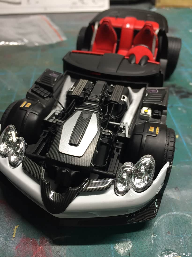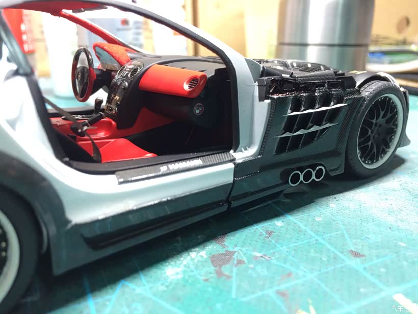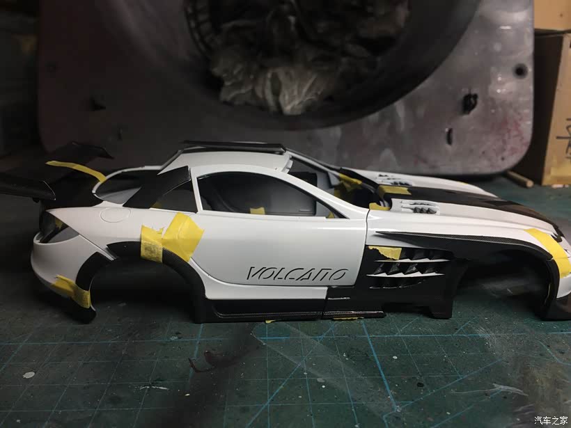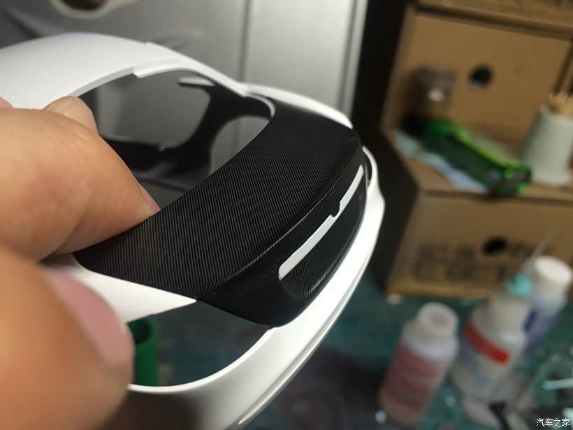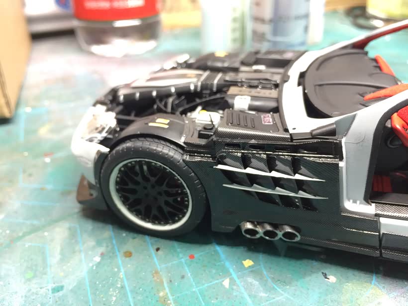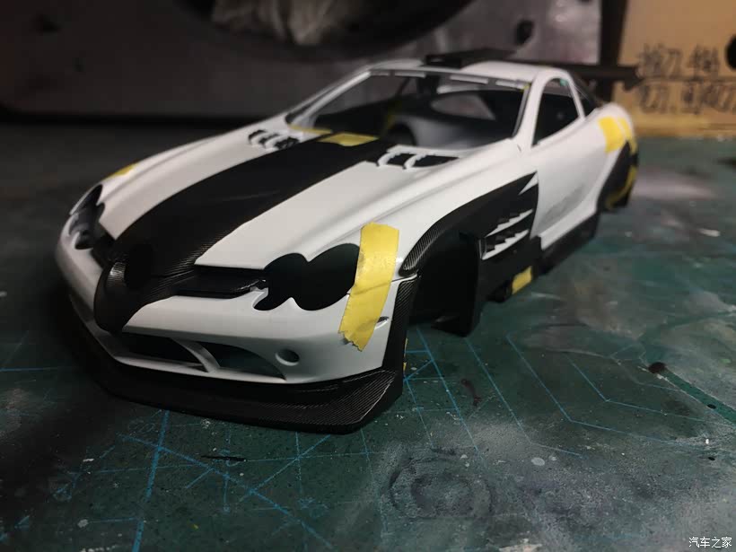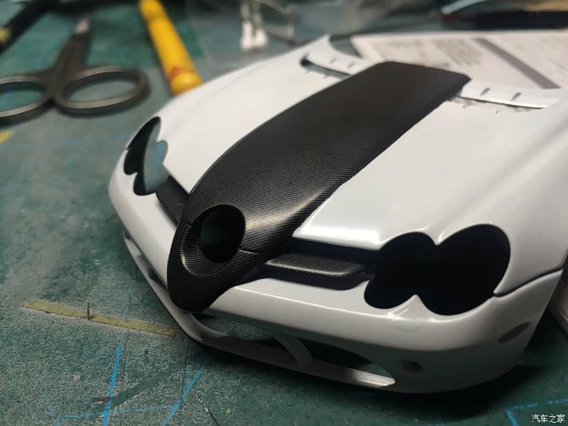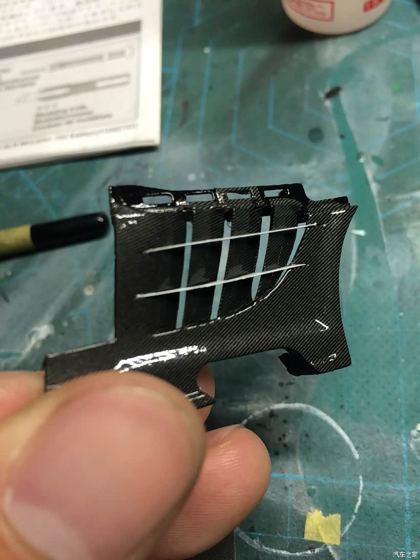 各种“花式”贴碳,各种对纹路,建议水贴贴不好的朋友可以把这台车碳纤维部分先分色喷黑,这样就算贴不好也不会很明显哈。