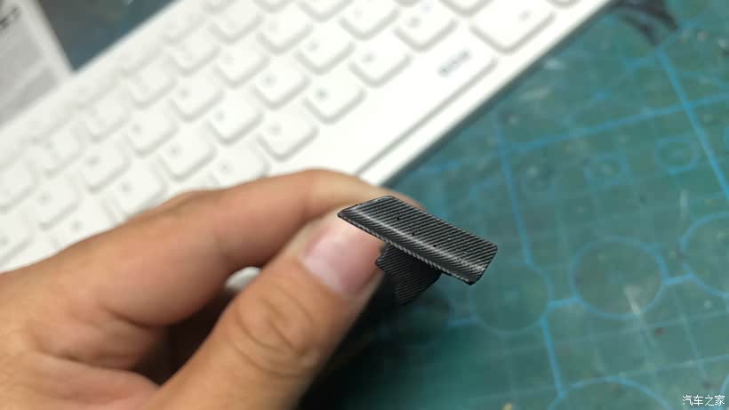碳纤维水贴先按照零件的形状遮盖好,遮好后将整块遮盖带整块撕下,贴到碳纤维贴纸上,最后切下来贴好就可以了。
