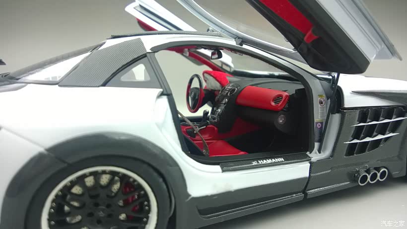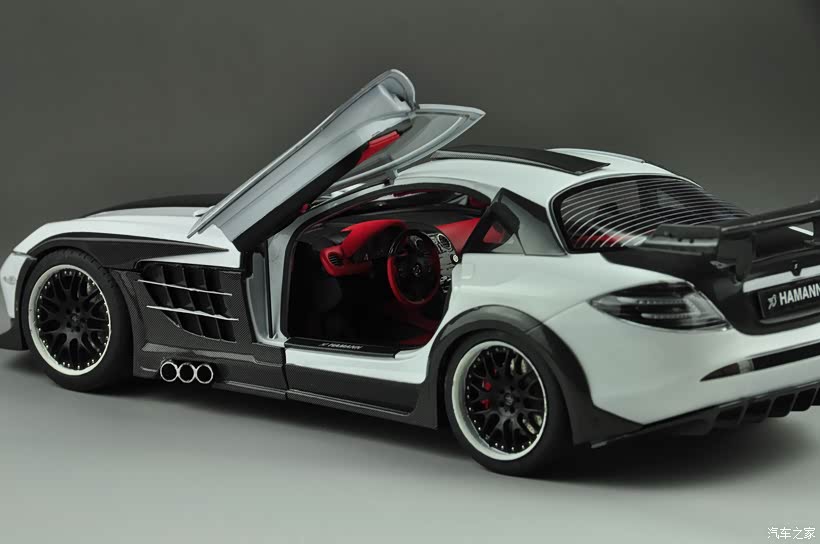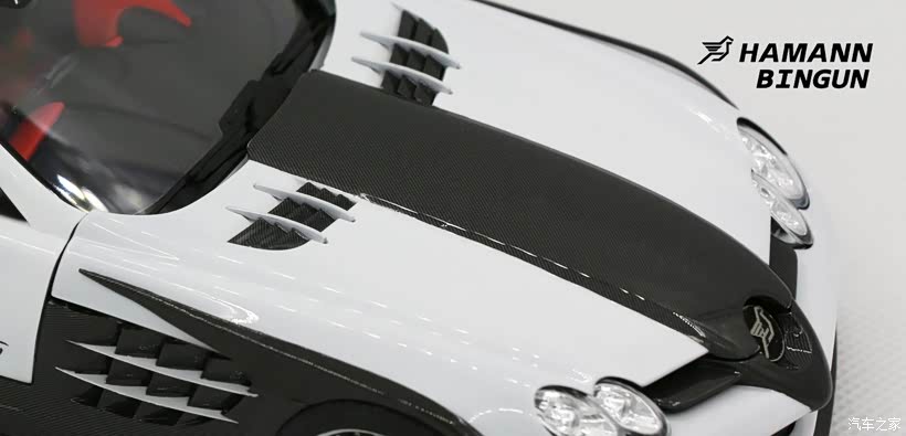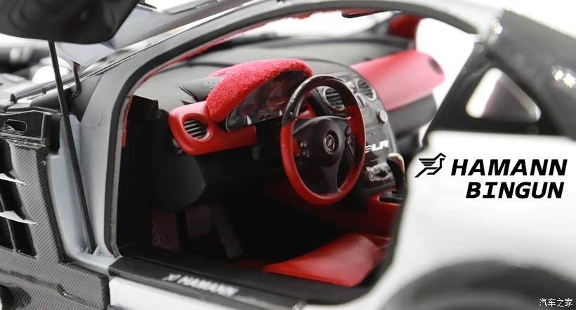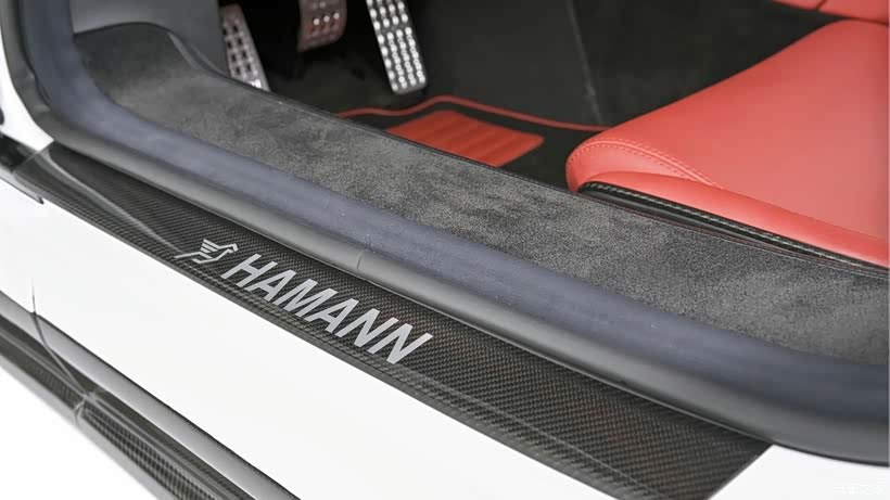 在追求性能的同时,Hamann也没有忽略对内饰的升级。新增的铝制踏板、脚垫和门槛装饰条,以及带有刺绣Hamann标识的头枕、重新设计的碳纤维仪表台部件及皮面覆盖件,都提醒大家这不是一辆普通的SLR。