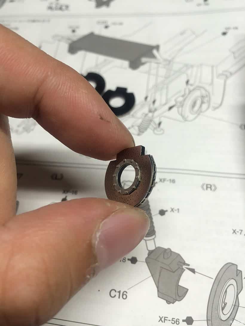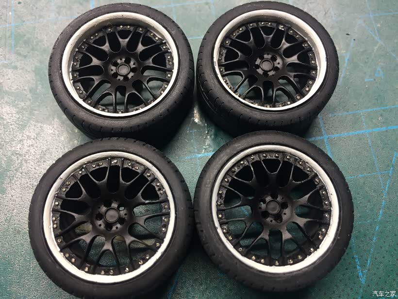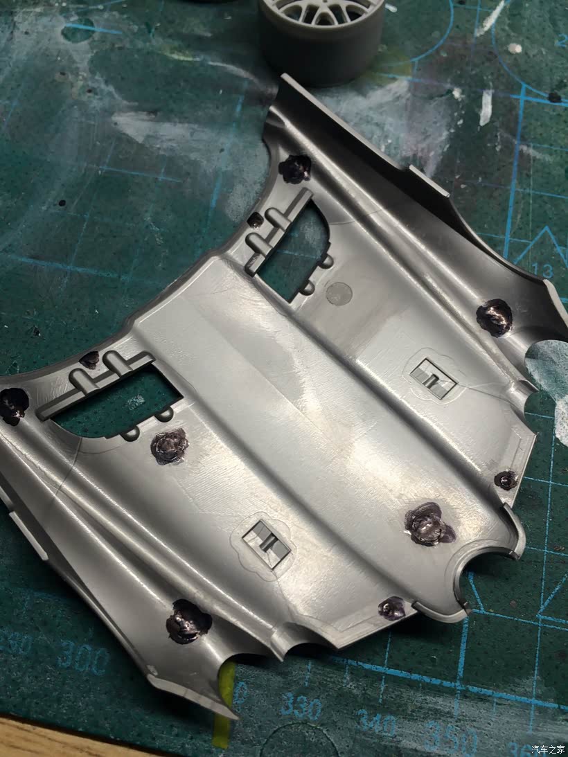 车轮铆钉是该车一大亮点,所以在基础件上打孔改造。