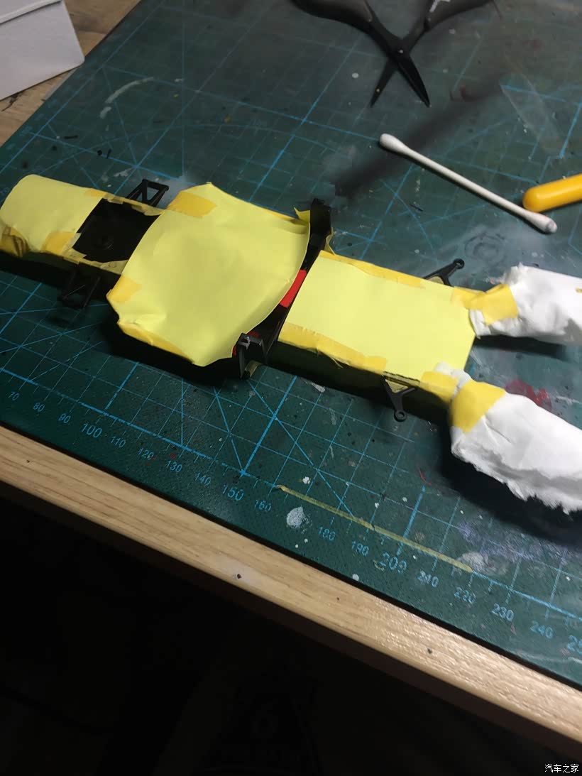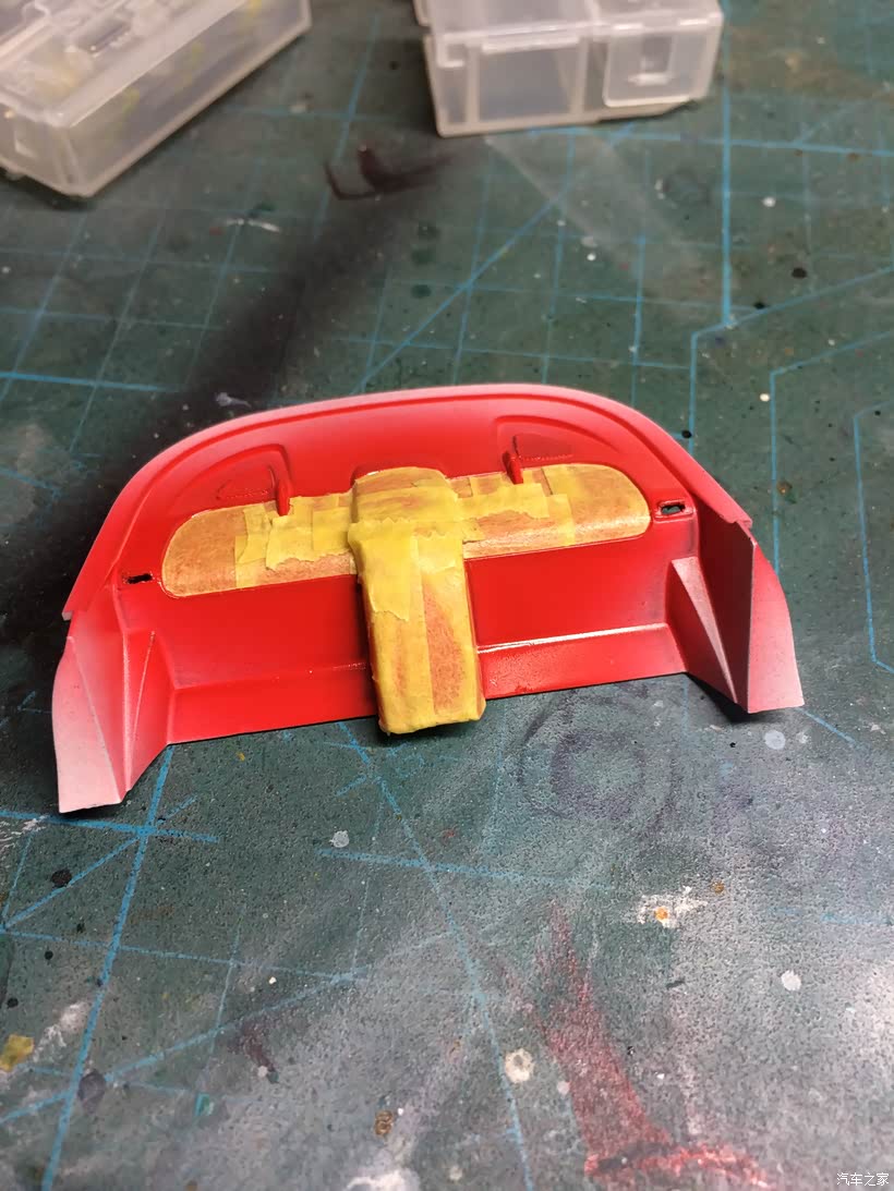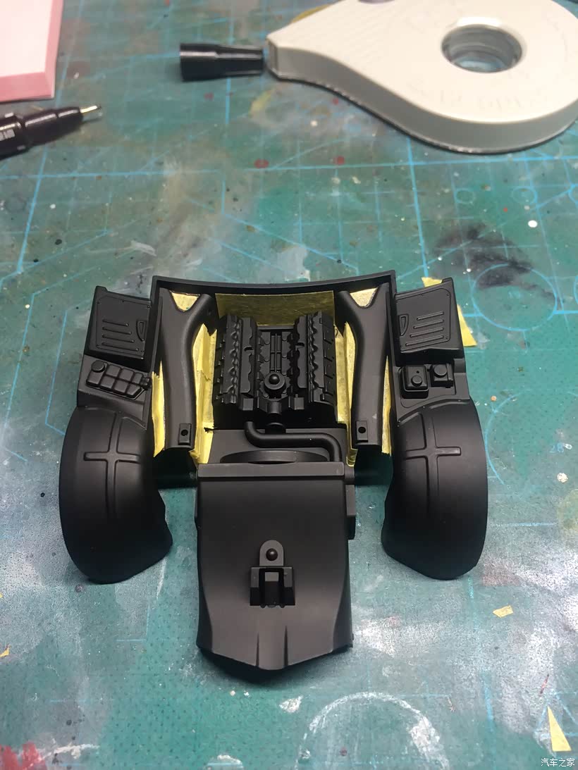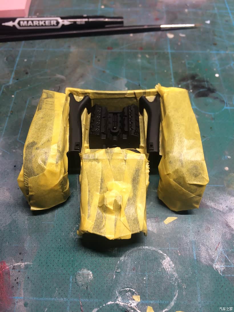 因为引擎和引擎舱是开到一起的,所以只能细致的遮盖,想要做好一台模型,干净的分色也是非常重要的。