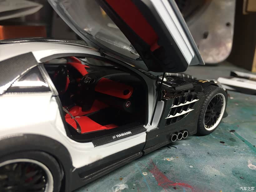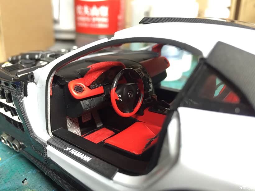 作品为2016年6月份作品,当时入坑不到两年,Hamann属于当年的“大作业”了,第一次制作树脂宽体、第一次贴碳、第一次制作蚀刻件、第一次加管线,这台车有太多的第一次,虽然当时制作的水平一般,但看得出当时自己对学习模型制作技巧的方向和目标非常明确,坚定。
