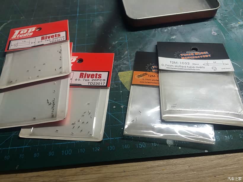 接下来是轮毂制作,轮毂上的铆钉非常多,使用了Top和T2M0.7mm的铆钉。