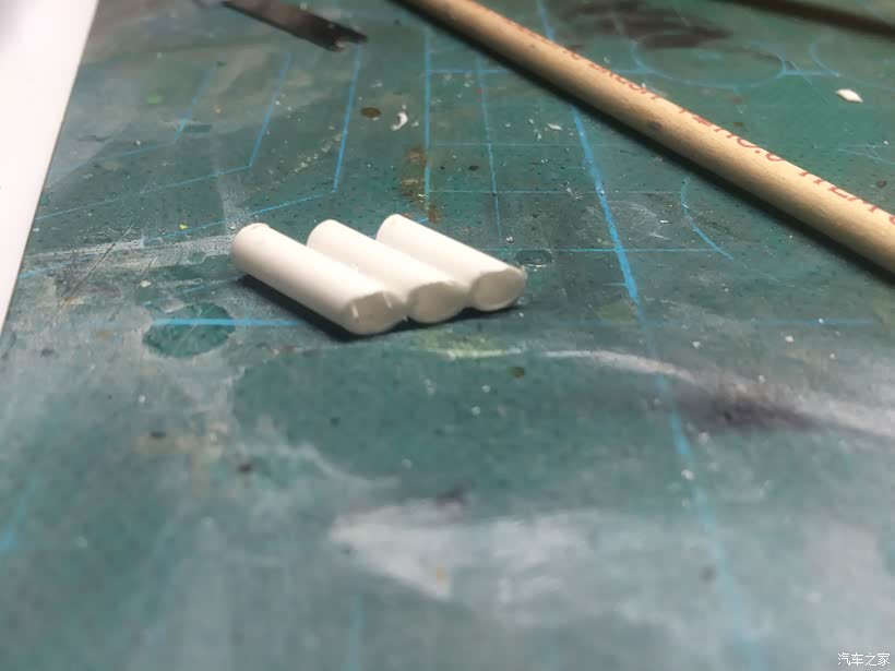 套件中没有给侧排,没关系,自制!用三个0.5cm的胶棒粘在一起侧切就可以。