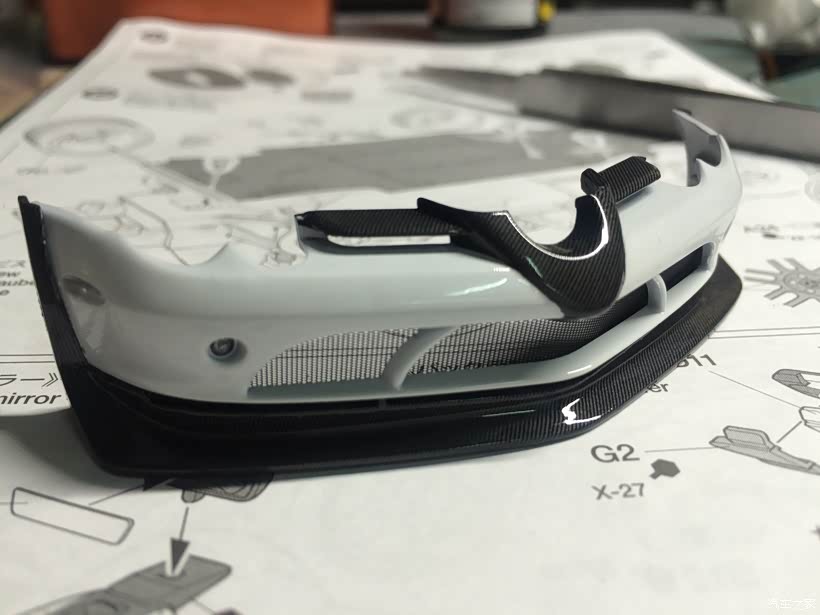 先将空气套件与车身进行假组,这套改件品质很高,假组检查几乎是严丝合缝。