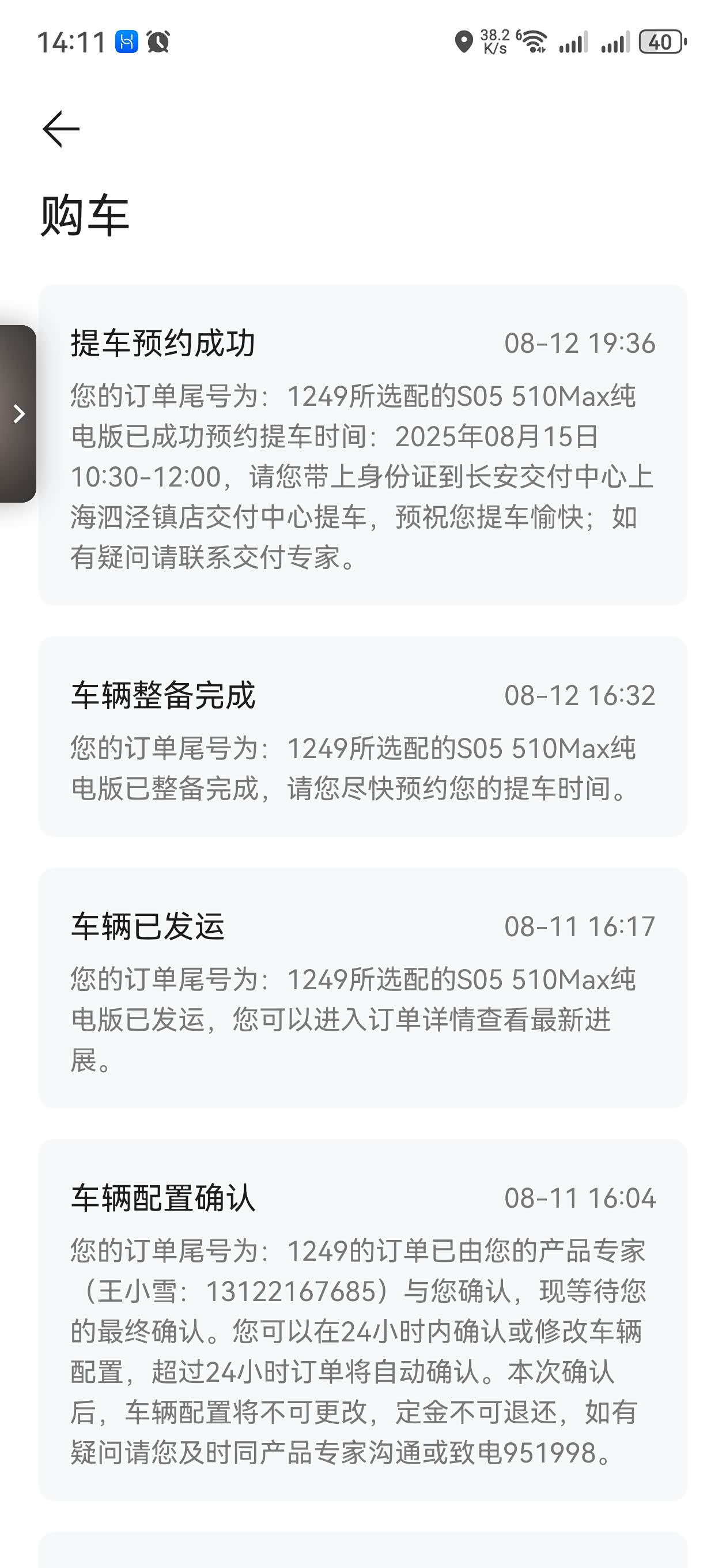 整个购车流程高度数字化。全程有专人负责,节省了大量往返4S店的时间。