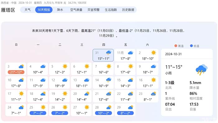看天气预告十一月后西安温度还会更低,目前看天气APP上的信息最低可以达到零下...