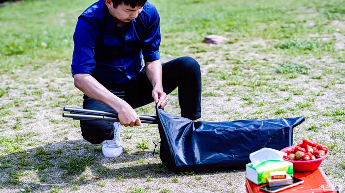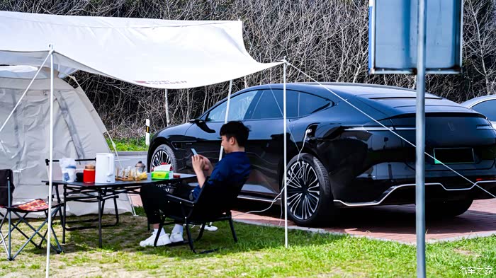 还好不是周末这边露营的人也不多,我们到这边就选择了一个比较好的地方,车辆停放车位上旁边就能够安营扎寨,放电功能也不影响,牵一个长一点插线板就OK