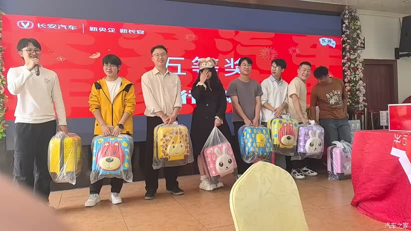 接下来就是我们喜闻乐见的抽奖环节了,每一个单独拎出来都是好东西,这是我们五等奖抽奖环节现场,其中一个女车主还不好意思上台领奖了,哈哈,五等奖是一个行李箱,装点东西啥的特别方便,特别实用!
