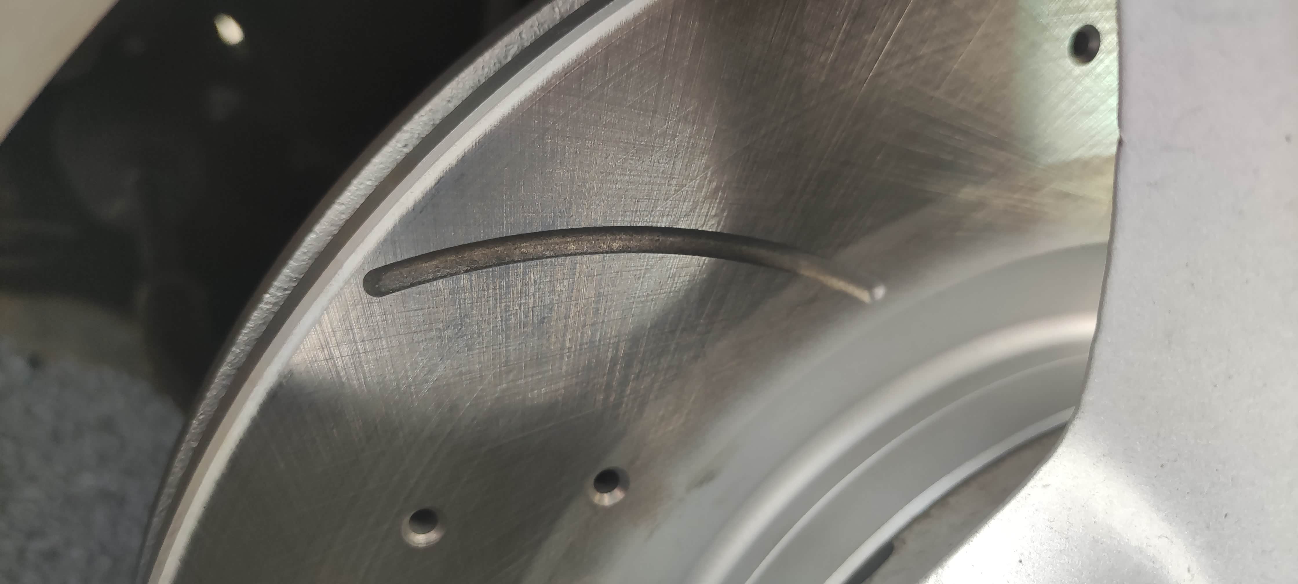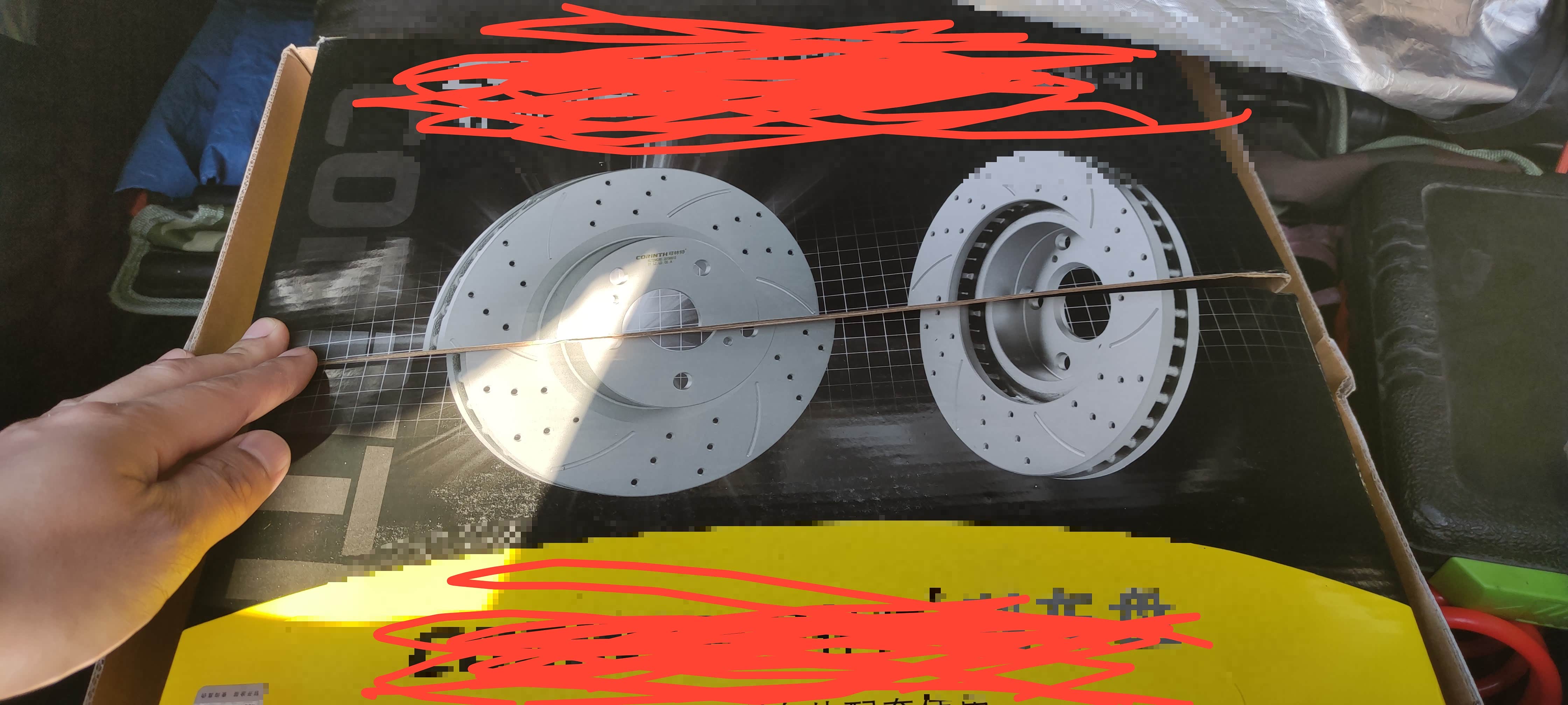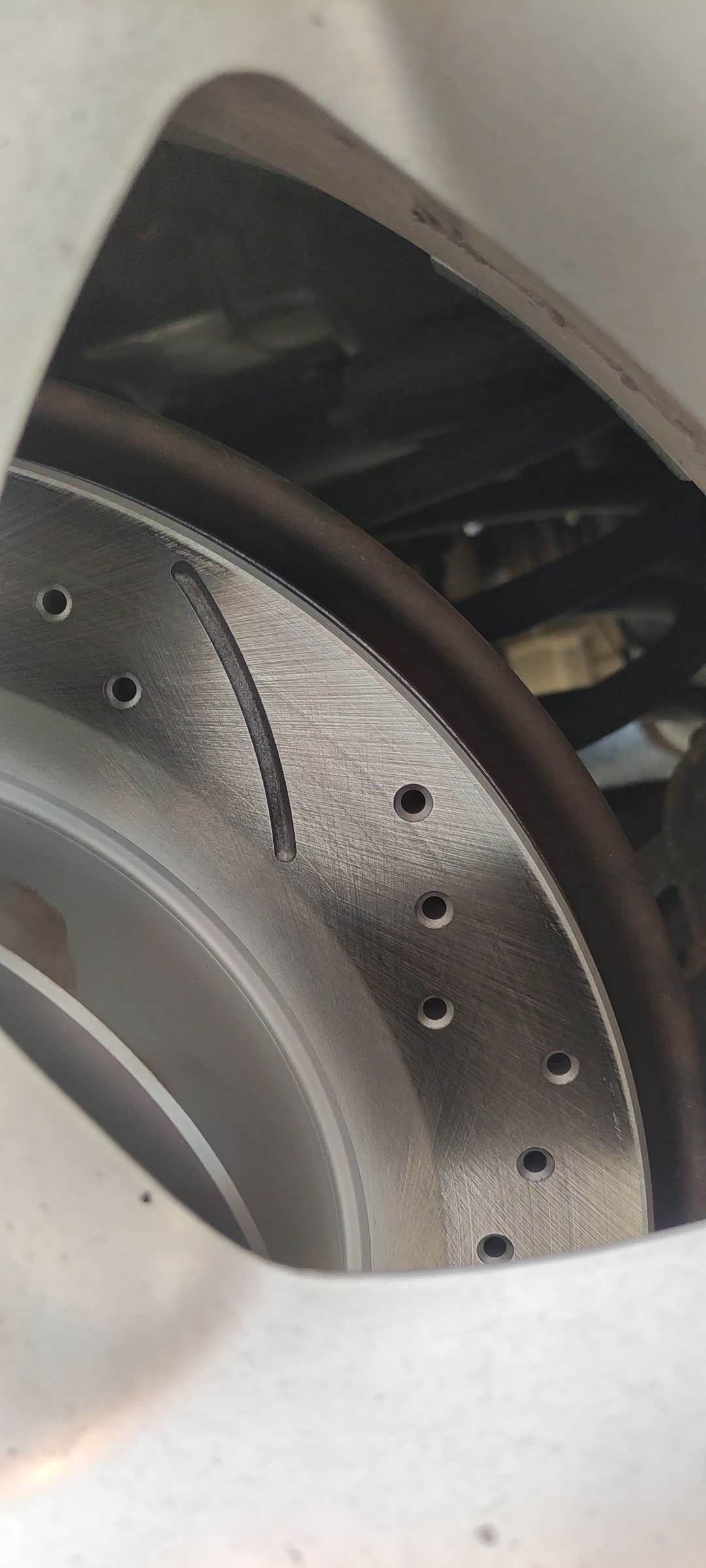 6月买回来13w6的里程,8月换了轮胎。看后盘不太行了。本来想买了盘去朋友那换,前几天刷直播看之前收藏的一个牌子搞活动,1200到手全套带安装。合计合计还行。也幸亏这次换了,不然没准哪天出危险。前盘其实不换也行,按理说这个公里数应该换过一次了。插下卡钳,内侧刹车片直接掉下来了。两头都碎了。平时只从外面看还能用一阵,一拆吓一跳。现在都在卖划线打孔盘,是挺好看的。