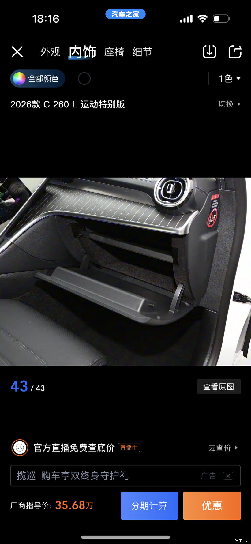 2026款C 260 L运动特别版的内饰板默认就是这种条纹样式,属于该版本的专属内饰装饰,没有其他可选样式,所以只要是这个配置,内饰板都是这个条纹设计。