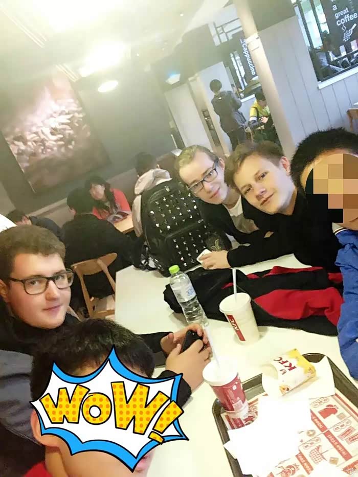 之后的几天时间里,上午他参加学校安排的各项课程,回家后我和爸爸妈妈更是想尽一切办法带他品尝美食,又和他夜游南京夫子庙,送给他了各种具有纪念意义的纪念品,每一天都过的无比充实。最后的几天,我们索性不带家长,几个接待的同学一起组织活动。大家都是年轻人,没有了家长在一旁无形的约束,在一起当然也能更嗨,新街口德基广场,南艺足球场,中山陵,南京大排档……都活跃过我们的身影。
