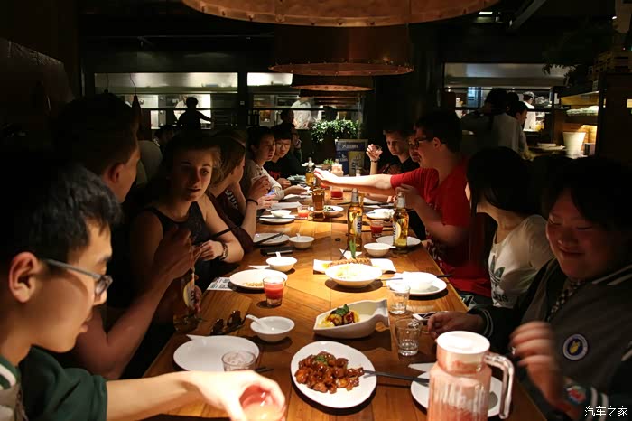 大家都是年轻人,吃个饭也都放开了自己的性格。那个德国小哥菲利普也是会玩,在地铁口微笑着很和蔼的和中国的人打招呼,中国人一个劲的说hello,一开始搞不明白为什么其他德国的同学笑得那么开心,后来才知道,那个词是德语的脏话。。。他又在商店试女士的衣服,比划比划裙子。。。搞得好多路人留足观看。就这样一路欢笑上了地铁。一顿饭,让大家融为了一体