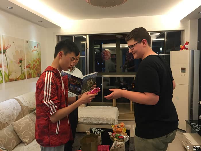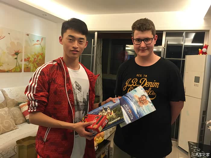 回到自己家中,或许是因为妈妈在楼下给我们买了两杯甘蔗汁,又或许是在车上我主动对话寻找话题,从进家门的那一刻起,托尔本的话明显多了起来。一番介绍后,他悄悄地走进了自己的房间,拿出了从德国带来的各种礼物,给了我们全家一个惊喜。无论是他母亲亲手做的爱心石头,还是给我准备的书籍和跳棋,又或是给我们一家准备的沐浴露,各式各样的糖果,都进行了精心的包装,虽说全是小东西,但我们家里的每一位家庭成员他都进行了考虑,这让我感受他们全家的细心。按照西方的习惯,我们打开了所有礼物精美的包装,我和老爸又当场开了他带来的啤酒和他干杯,一饮而尽。晚饭时略有些尴尬的气氛完全被化解,我和托尔本聊着之前他在中国旅游的见闻,聊着我们这个礼拜的行程规划,起居习惯等等话题,不知不觉到了晚上11点,在父母的催促下才回房间进行休息。