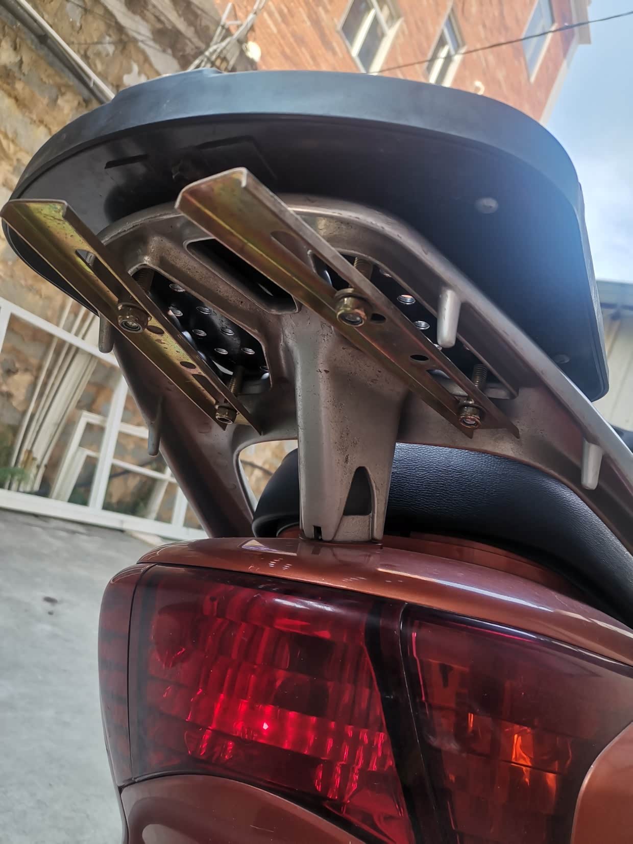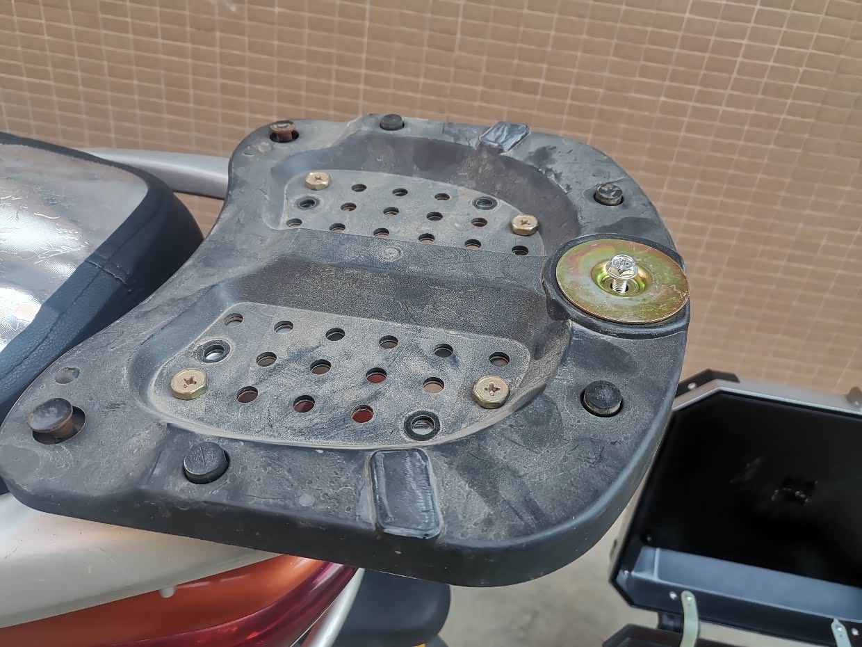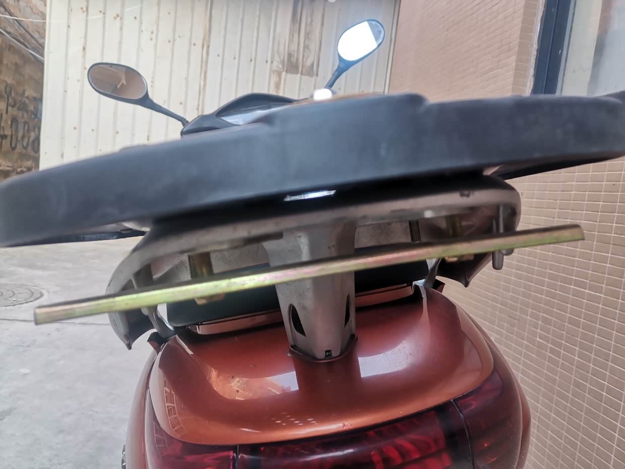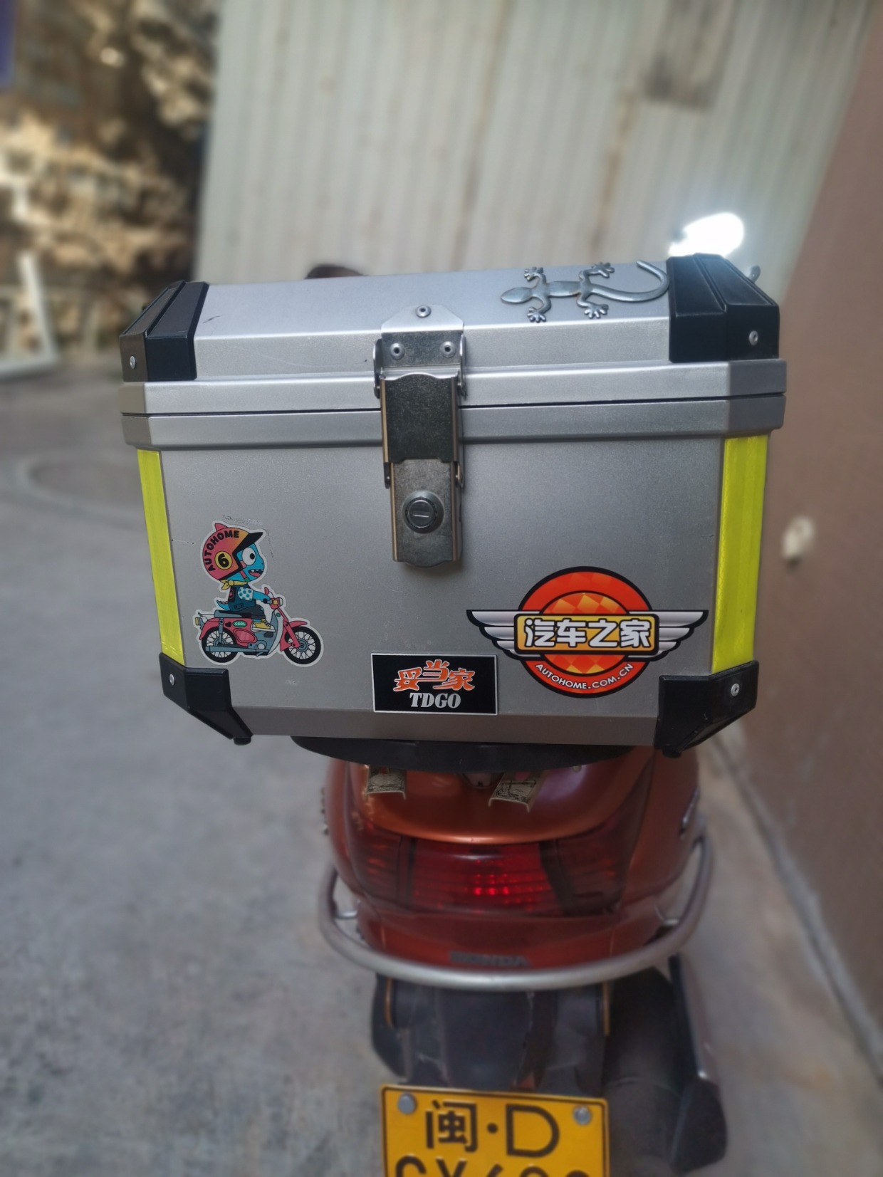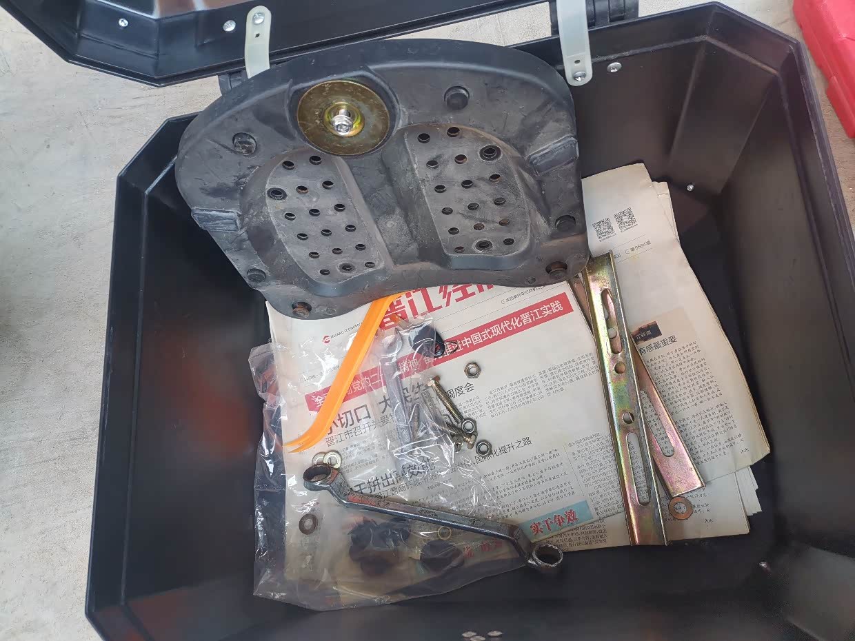 没有尾箱的时候外出头盔没地方放,虽然这车的坐垫下面有一个很大的储物空间,还是有些不太方便,虽然踏板前面也可以放菜,但是买菜的时候有的小东西还是放在尾箱比较安全,于是就有了安装尾箱的想法。