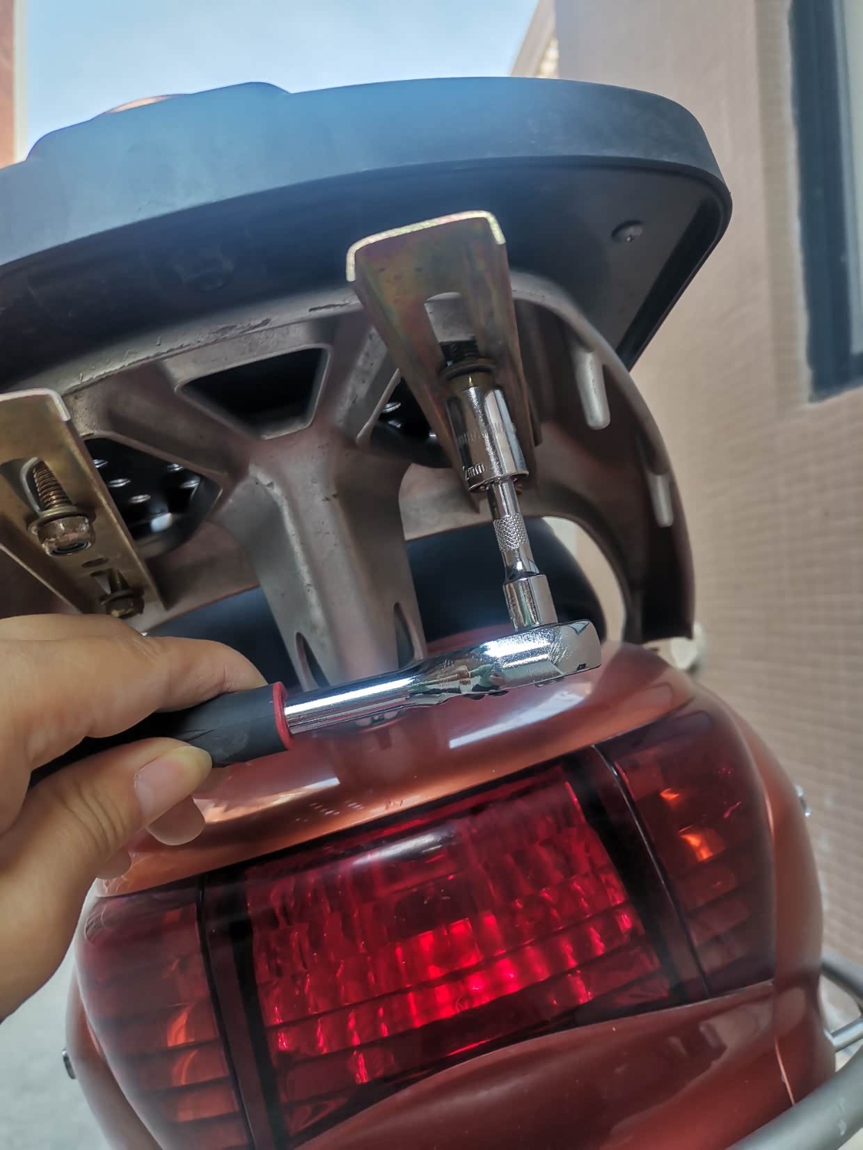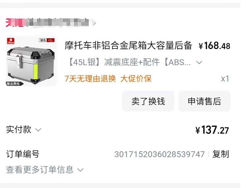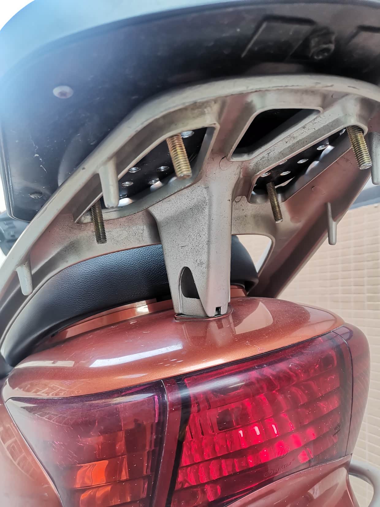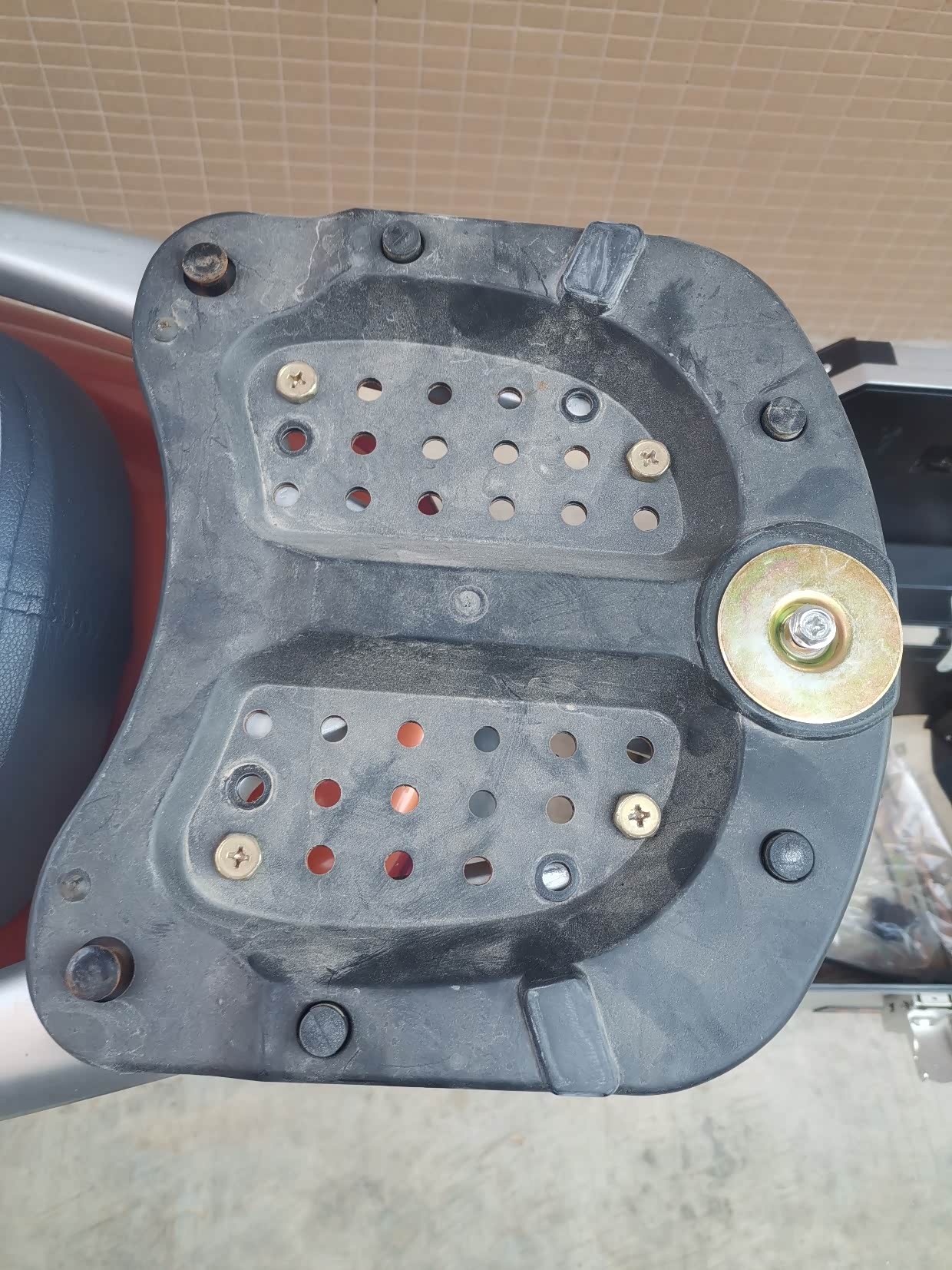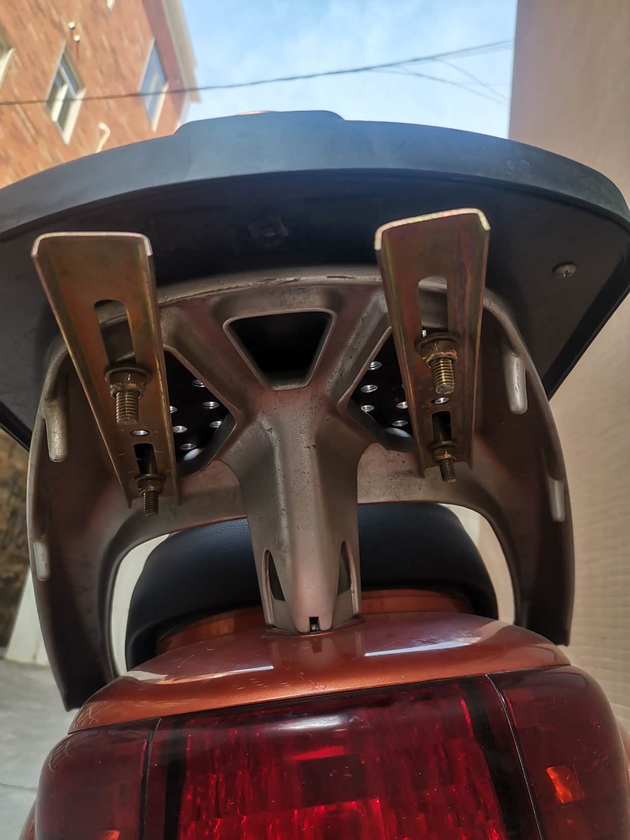 没有尾箱的时候外出头盔没地方放,虽然这车的坐垫下面有一个很大的储物空间,还是有些不太方便,虽然踏板前面也可以放菜,但是买菜的时候有的小东西还是放在尾箱比较安全,于是就有了安装尾箱的想法。
