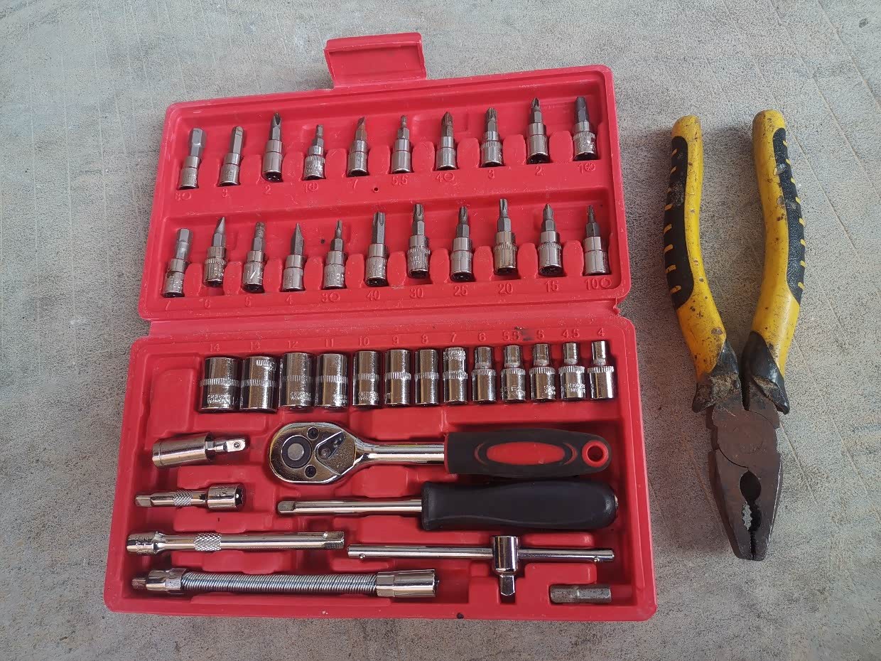 这次的作案工具很简单,14#的套筒和一把老虎钳就可以了。