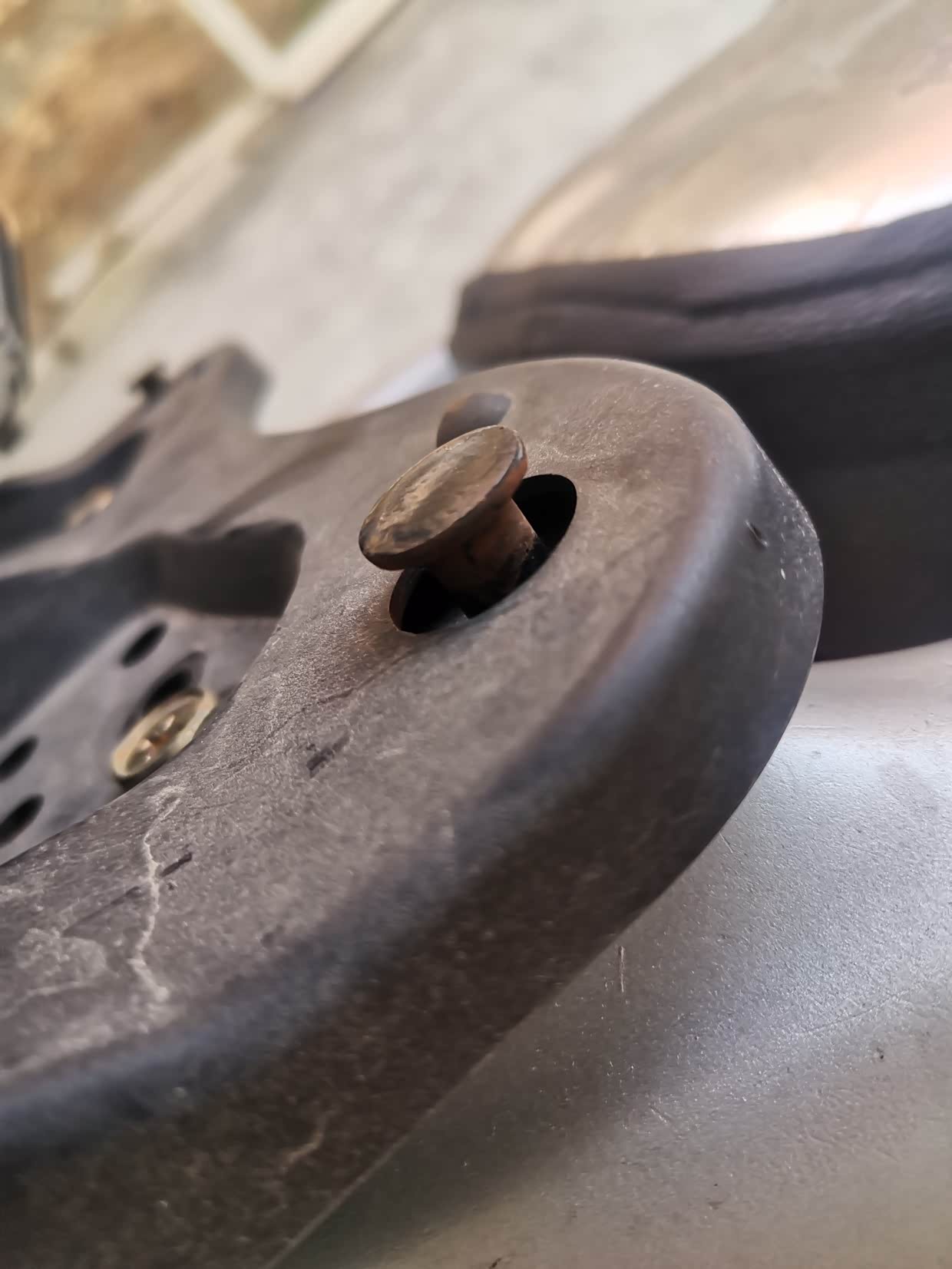 这是底板前端上面固定尾箱的蘑菇钉,有两个,左右边各一个。