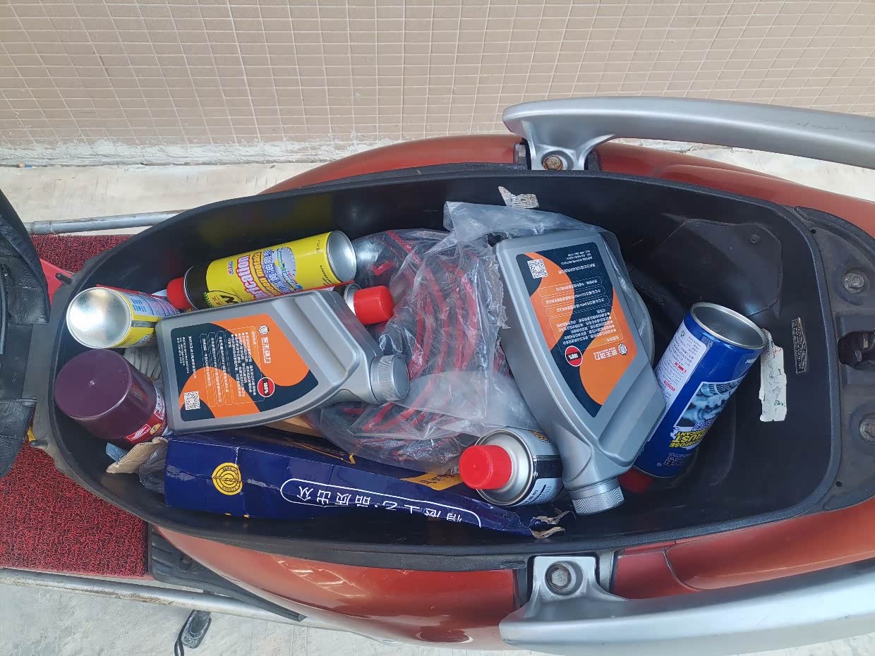 其实这车的坐垫下面有一个很大的空间,几乎都可以满足日常使用,但是我放了很多小工具在里面,洗车工具那一套。