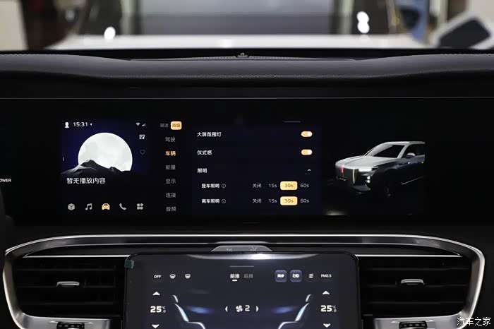 在内饰方面,红旗E-HS9同样呈现出极致的豪华感与科技感。中控区域几乎被大尺寸屏幕覆盖,配备了先进的智能互联系统和智慧生态识别系统,提升了驾驶的便捷性和舒适性。座椅宽大厚实,舒适性配置丰富,尤其是4座版本的车型,为乘客提供了头等舱般的乘坐体验。内饰材质方面,E-HS9采用了大量软质材料和真皮包裹,触感细腻,质感上乘。细节之处,如精致的缝线工艺、金属装饰条以及氛围灯的巧妙运用,进一步提升了车内的豪华氛围。尽管第三排空间表现一般,但整体而言,E-HS9在舒适性和豪华感上已达到同级别车型的领先水平。