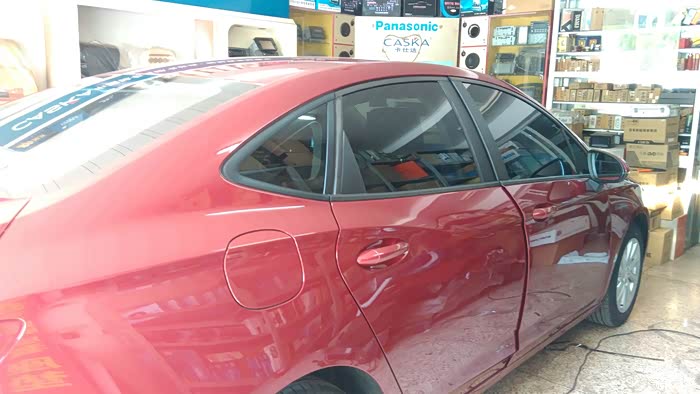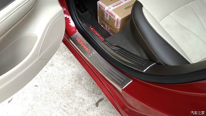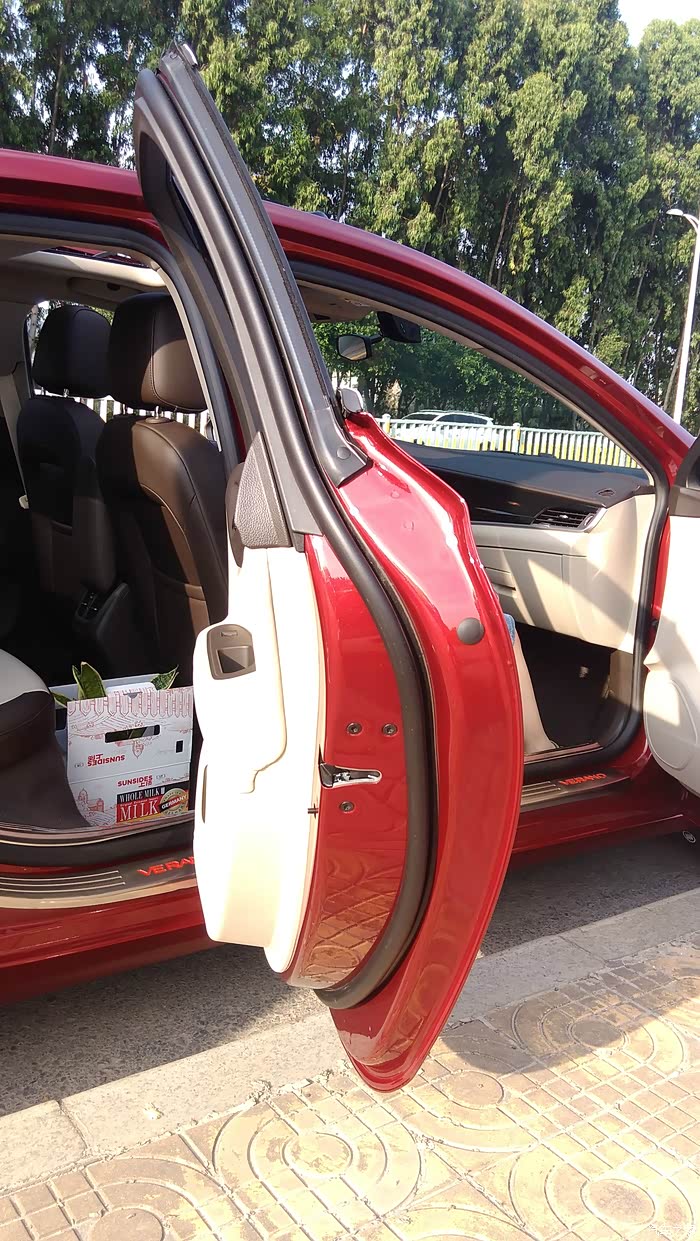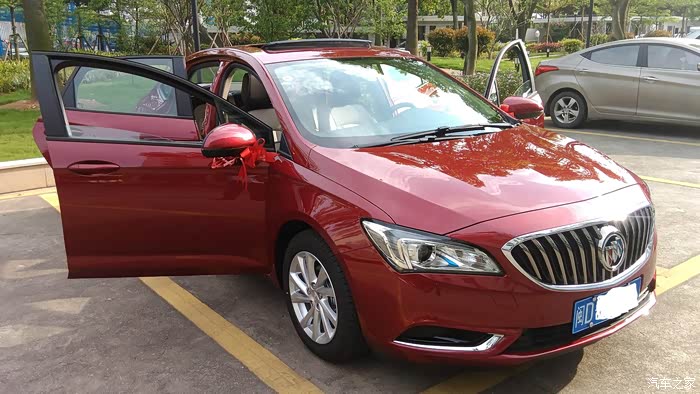 。得说下我们几个人个个都言而有信,说到全到位,不象有些号称20-30人的团,最后只有3-4个人去。4S店见我们一下这么多人,直接楼上雅座包间私聊,过程就不说了,唇枪舌剑少不了,最后大老板才从后台出场,价格双方均相当满意。由于有签价保协议,暂时不能告诉大家具体价格,过后再补上,请见谅。由于是第二台车了,也就没有买第一部车时那么激动,新车加95号油,加满305元,目前近400公里了,百公里油耗显示7。8升,由于第一箱油还没用完,还无法最准确的油耗,但觉得威朗真的相当省油的。优点:高端大气上档次,中级车啊,车身流线型,目前最成功的车身。后排空间那个大啊,跷二郎腿还有一拳,正常快四拳。也有缺点:10-40公里真的会低速顿挫,也就是有些加速无力,得加大油门才行,但上了40公里,动力就来了。本人老司机了,17年驾年龄,从有驾照就开始开车了,所以车还是懂点的。威朗低速顿挫是因为一档二档行车电脑换档延迟,是为了获取更大的扭矩,也就是说上陡坡好开。听说4S升级电脑缩短了行车电脑换档时间,但牺牲了大扭矩,反正我目前不会去升级电脑。红色雪佛兰乐风,我第一部坐驾,好车一部,所以第二部一样只选美国通用品牌的车。好了,不多说了,上超多图。。。。。