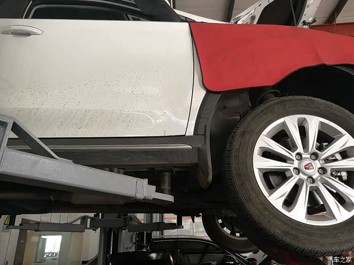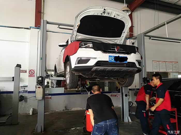 荣威RX5不是我的第一台车,以前也做过保养,所以大体流程我还是还算是清楚的。到了地方把车交给师傅,我出去接了个电话回来,RX5已经升起来了。师父的效率还真是不慢。
