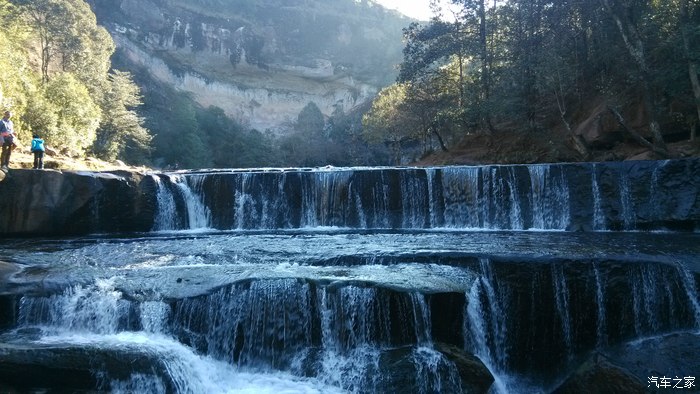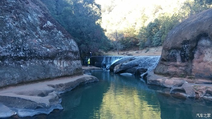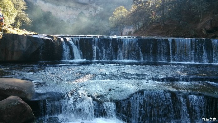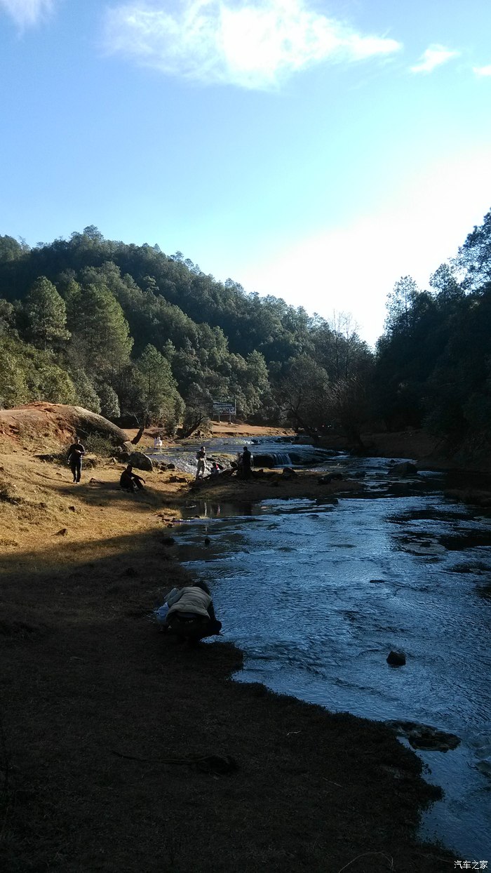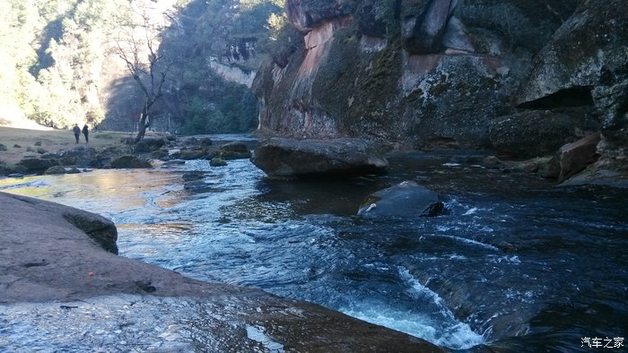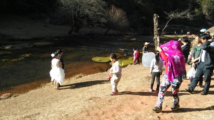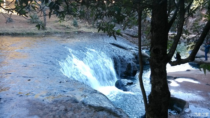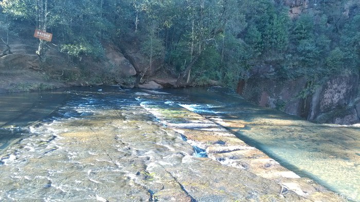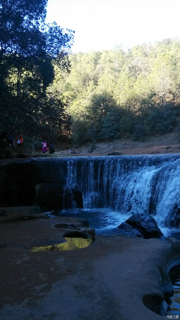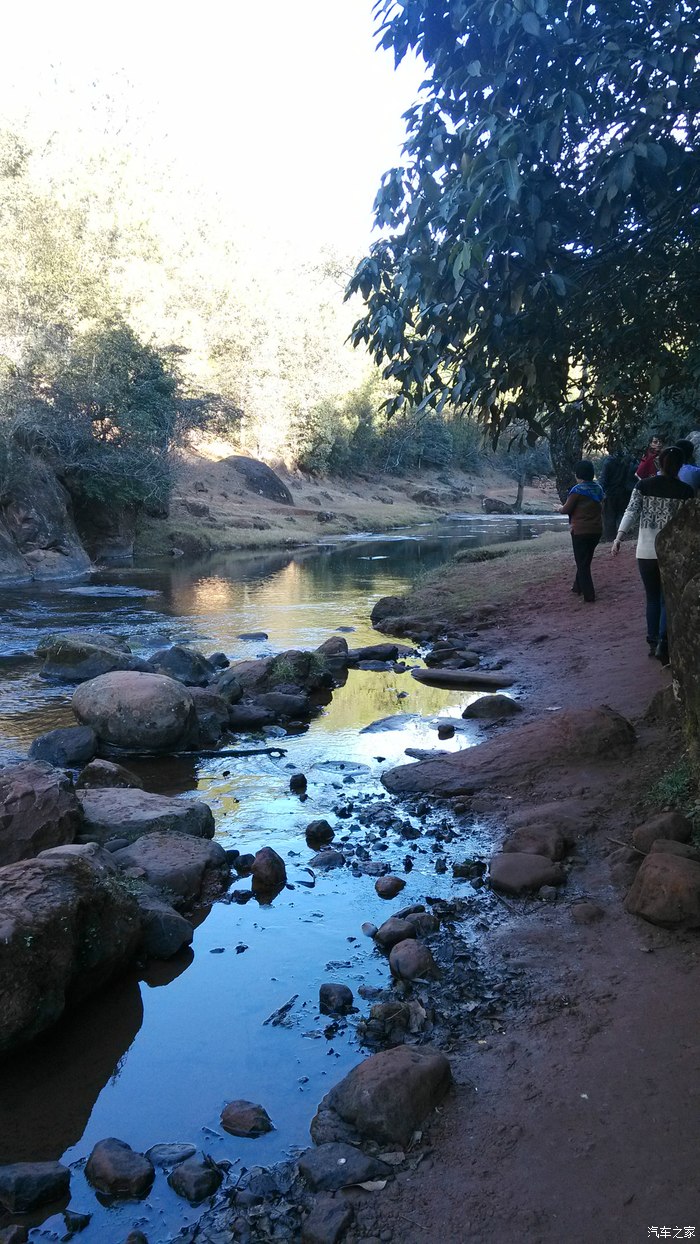 下午3点左右到了水城河。水城河风景区位于插甸乡水城村,距武定县城58公里。水城河系掌鸠河之源头,流域范围内植被茂密,湖光水色旖旎迷人,有溪流瀑布欢唱,高原平湖静思,云雾高山缠绕,巨石险壑耸立,深谷村落悠然……丰富的景观类型和良好的生态环境使这一区域到处充溢着清新与自然之美。清澈的河水在宽阔而坚硬的河床上静静地流淌,由于大自然的天工之作,造就了数道0.5米─20余米不同类型的瀑布。河床两岸巨大而奇特怪异的红砂岩与原生植被交融为一体,构成了一个个漂亮的景点。景区与水城村相连,民风纯朴,美食以腊肉、洋芋最为出名。