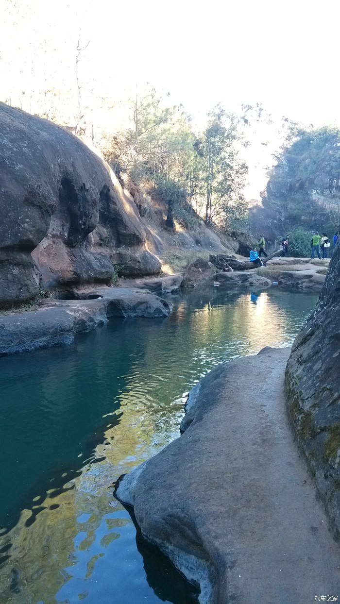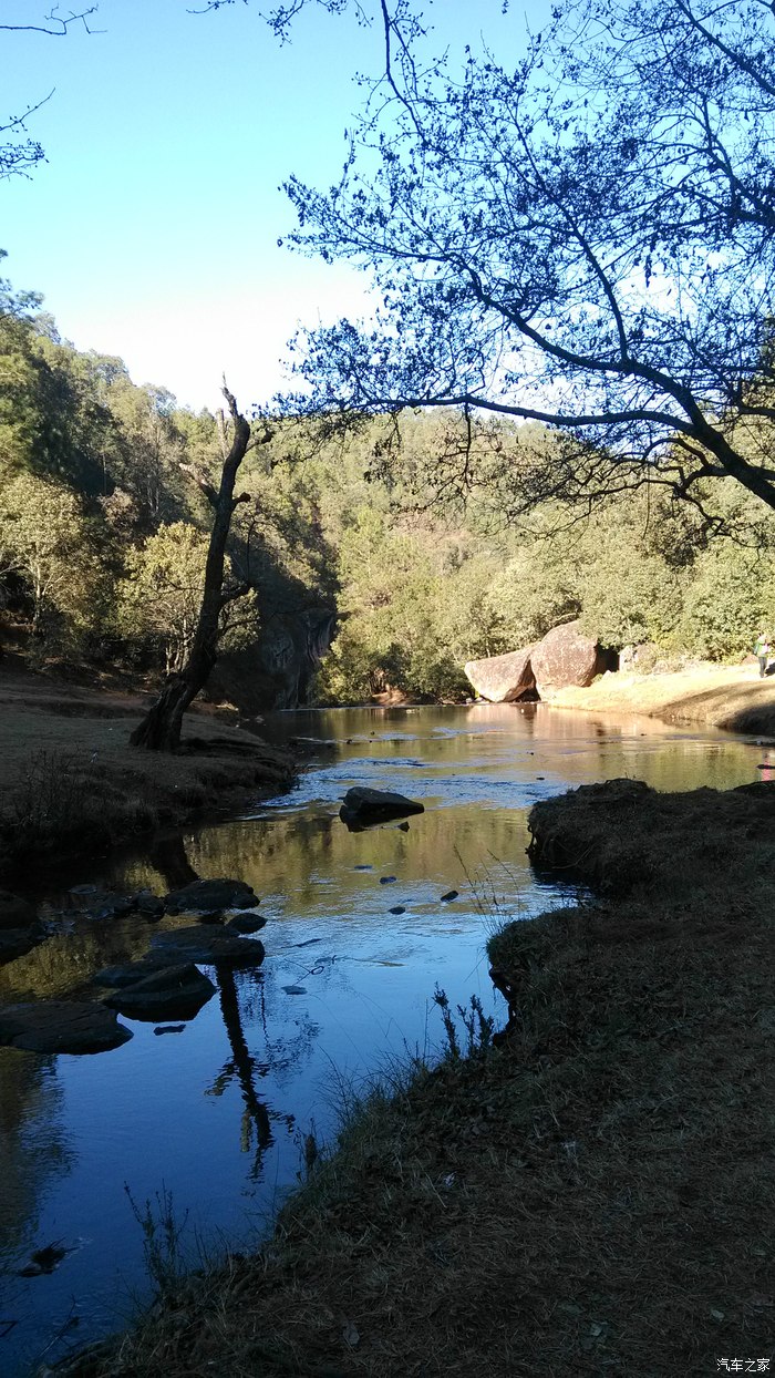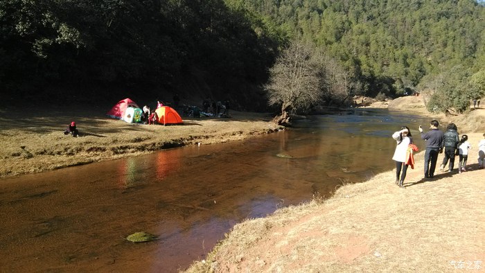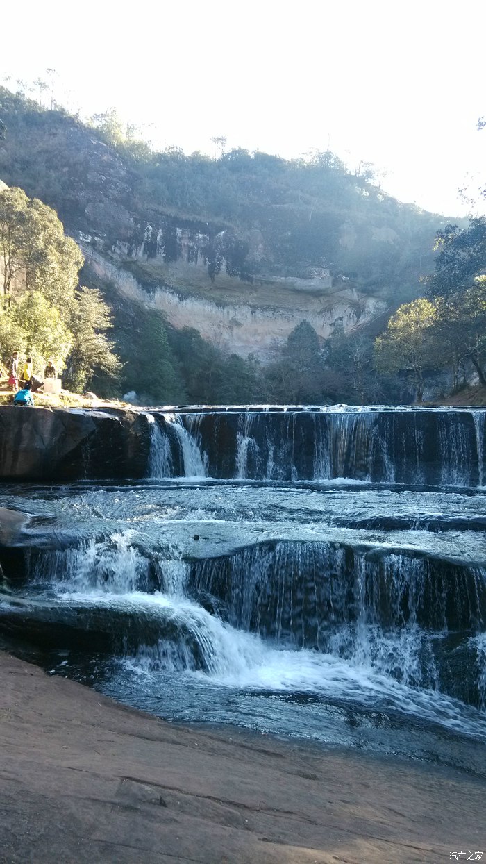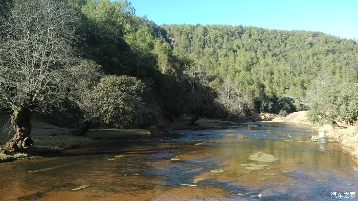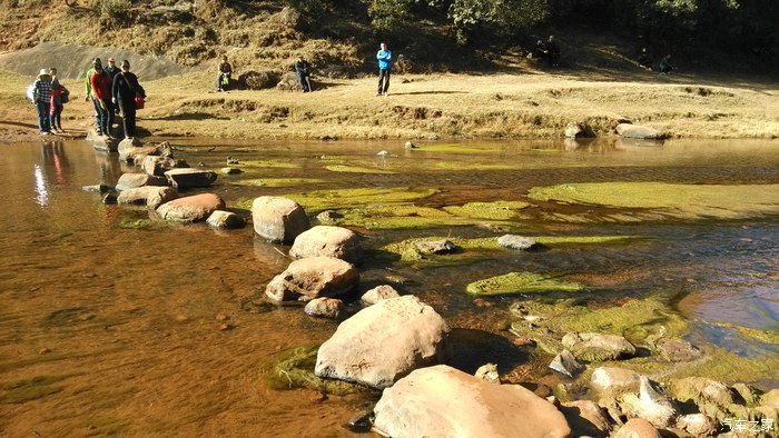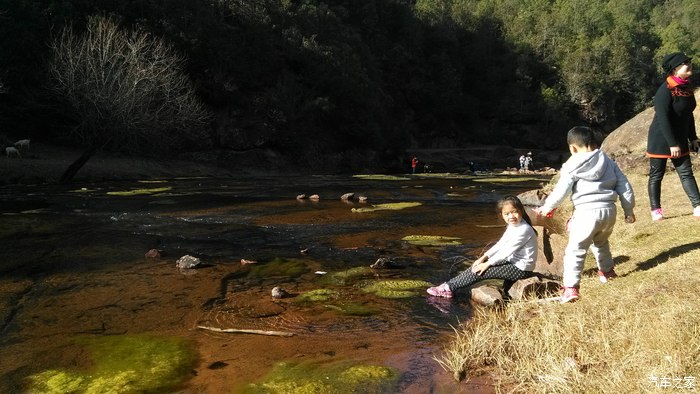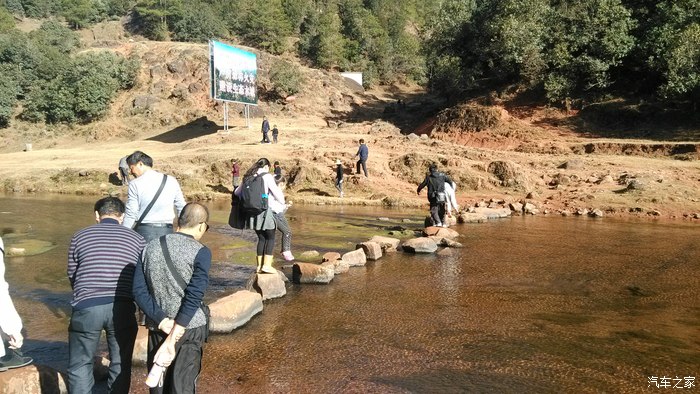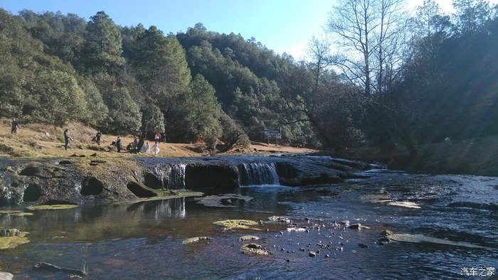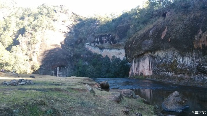下午3点左右到了水城河。水城河风景区位于插甸乡水城村,距武定县城58公里。水城河系掌鸠河之源头,流域范围内植被茂密,湖光水色旖旎迷人,有溪流瀑布欢唱,高原平湖静思,云雾高山缠绕,巨石险壑耸立,深谷村落悠然……丰富的景观类型和良好的生态环境使这一区域到处充溢着清新与自然之美。清澈的河水在宽阔而坚硬的河床上静静地流淌,由于大自然的天工之作,造就了数道0.5米─20余米不同类型的瀑布。河床两岸巨大而奇特怪异的红砂岩与原生植被交融为一体,构成了一个个漂亮的景点。景区与水城村相连,民风纯朴,美食以腊肉、洋芋最为出名。