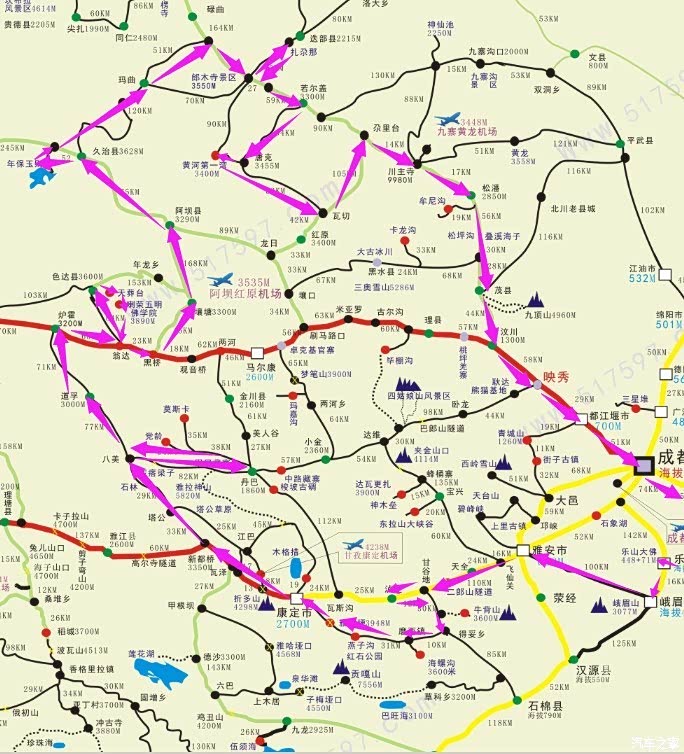 车,出塔公草原后,过八美镇,就可以沿着大金川河边的高山峡谷蜿蜒而行。沿途的景色美丽迷人,河的两岸在高山上相望,山势陡峭,仿佛被斧头和刀子砍断。山上的树是绿色的,山很高,森林很茂密在茂密的山林中,山中会有幽幽的小路,蜿蜒在云层环绕的山坡上,仿佛一条条白色的哈达散落在山间,这些白色的哈达延伸至零星散布在山林掩映之下的一户户人家。