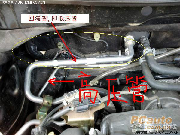 下图是别的车型高低压管分开的,用做参考!