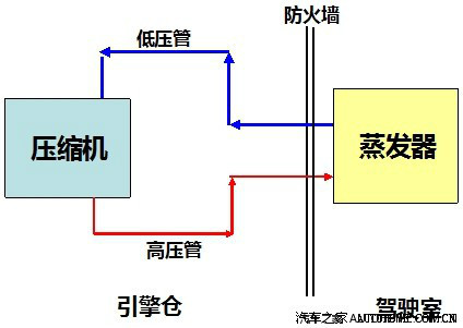 当冷媒从驾驶舱内出来的时候,管路里面流动的可能完全是气体(如果蒸发器热交换非常理想),也可能是气液混合物。因为压缩机是不能压缩液体的,所以这段管路的任务就是继续吸收外界的热量将气液混合物完全汽化,顺利输送回压缩机。其实在这段管路上有一个非常重要的装置,就是汽化室(类似于梭子状)它的作用就是吸收外界的热量,将回流管中残存的液体冷媒完全汽化,防止液体冷媒进入压缩机。从驾驶仓内出来到压缩机这段管路我们俗称回流管。如果将此段管路用保温材料包裹,此段管路的温度将变的非常低,可以达到零下几度。这时的回流管不仅不能从外界吸收热量来汽化冷媒,反而会起到想反的作用,将处在液体和气体分界点上的冷媒重新液化,变成液体。从而进入压缩机,引起压缩机的种种故障!