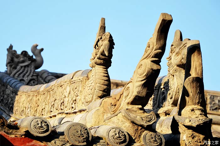 屋顶上的神兽的形态多种多样,不等的神兽数量代表不同的级别,屋顶上的这些瑞兽为这些古朴的建筑增添了美感,看上去古韵悠长。陶瓦从屋脊一直排列到檐端处,瓦当的下面是椽头,上面的绘画、工艺和雕刻相结展现出中国艺术的魅力。