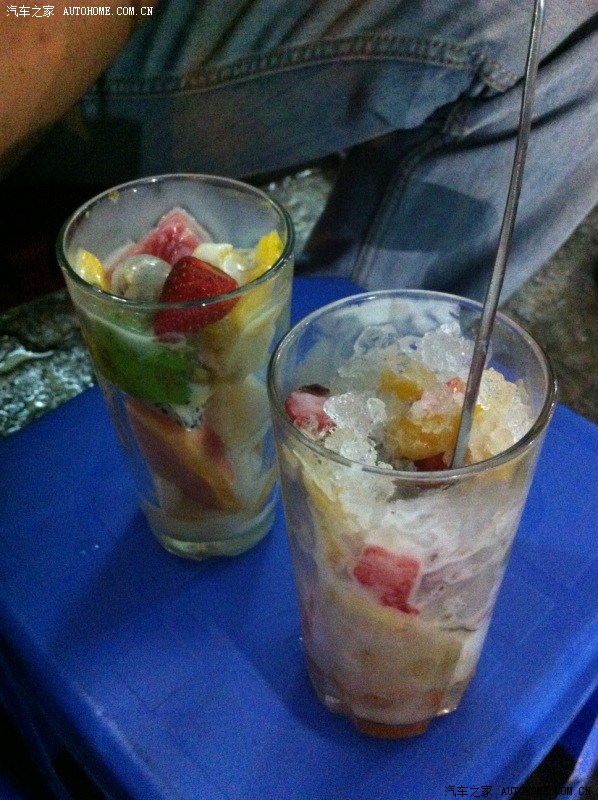 路上,酒店旁边吃个水果杯,找酒店之前就盯上了~各种新鲜水果搅拌上炼乳,再配上碎冰.清爽啊!!价钱也不贵.2万盾一杯.