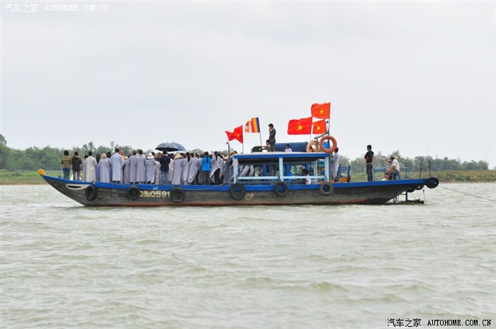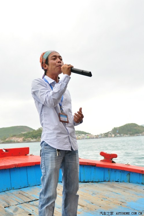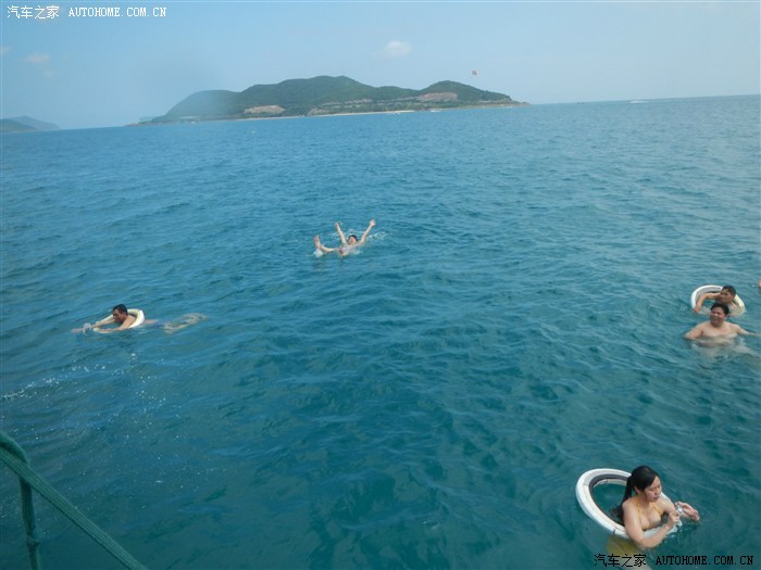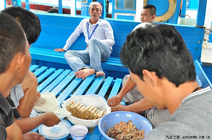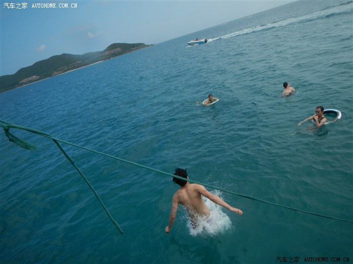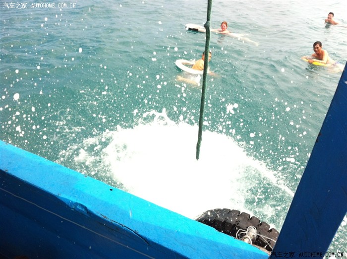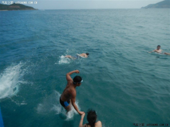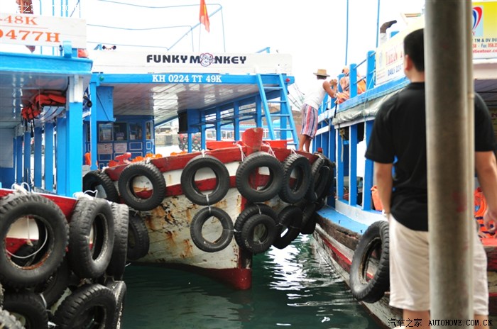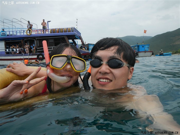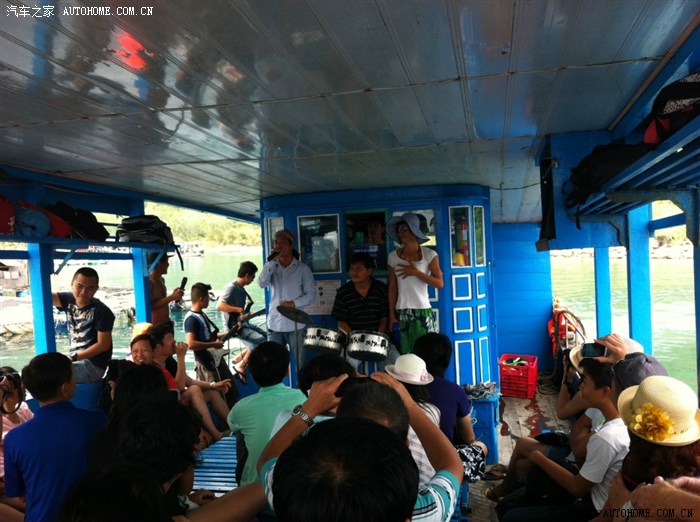 出发了,海水绿绿的,个人感觉比岘港好很多.大家都把比基尼套在里面,准备随时下海.当然,在船上也能换装!
