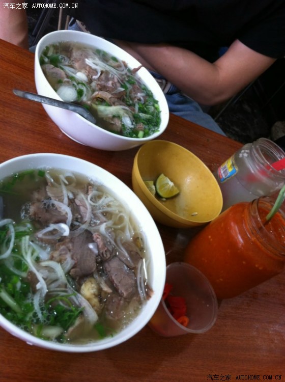 早餐,4万盾一碗,很清淡,有点像我们的牛肉面,但是面条很薄,所以和牛肉面口感还是有很大区别的.挤一点那个类似柠檬的果汁进去,更有赶脚了.