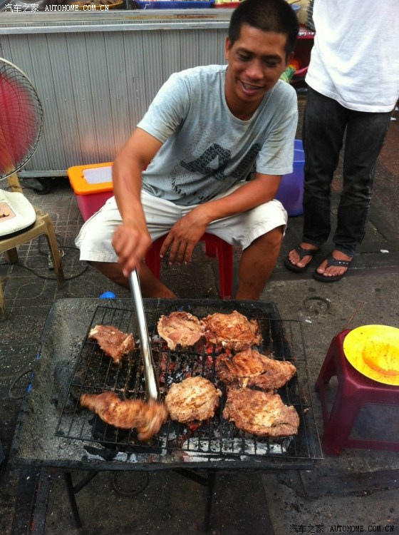看到烤肉,一问是猪肉.看到不少老外在吃,我们俩也要了两份,一份3万5千盾.老公砍价6万盾两份.
