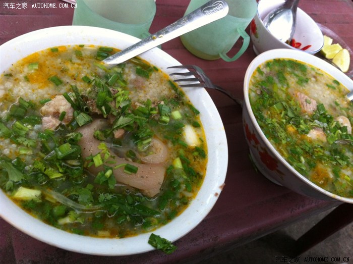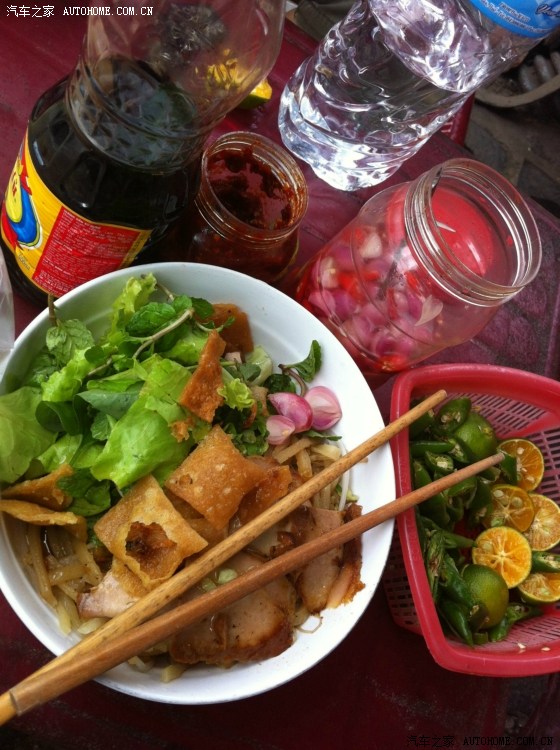 好吃的午饭,也是摩的司机推荐的!里面有米饭,主题.还可以加柠檬汁一样的那个果汁.还有辣椒!比河内便宜很多.2万盾一碗.