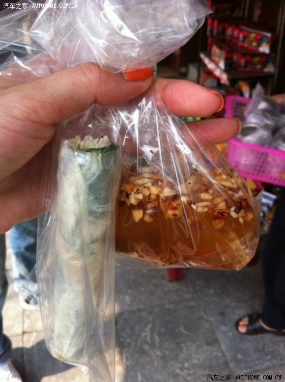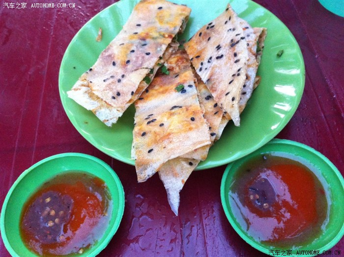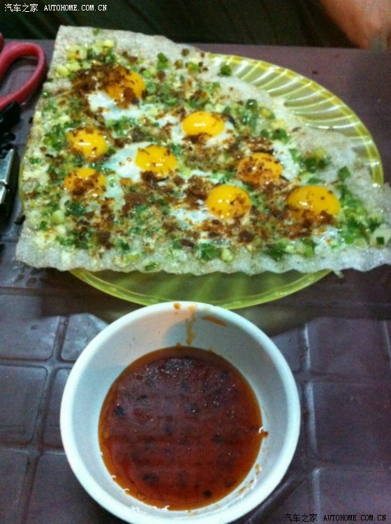 路边看到不知道是什么的小吃.一小块一小块的!上面还煎了荷包蛋!蘸着调料吃!味道好极了~~吃货是不是吃什么都觉得太好吃了....?