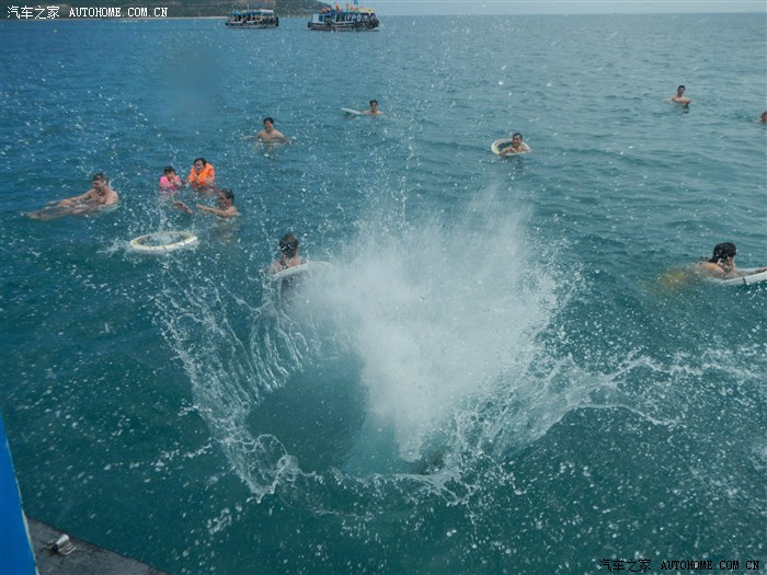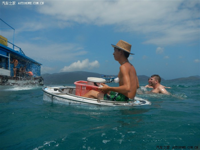 为什么搞笑角色都是他来?等他准备好,就有工作人员开始往海里跳,游客才明白原来要这么玩!于是争先恐后跳下海,跳下去以后站在船顶层的工作人员就会给你扔个救生圈,可以过去找这小哥要酒喝!浮在海上喝酒,一定很有感觉!